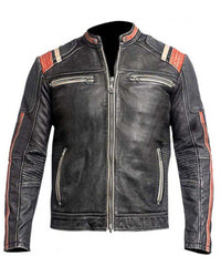 The retro distressed leather Jacket is made from real leather, a high-quality material that provides both endurance and fashion. It has a fashionable stand-up collar that adds to the overall look of the jacket. The easy zipper closing makes it simple to use. The zipper has cuffs complementing the jacket's sleek design.