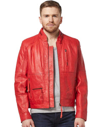 Glowrexs Men's Classic Stylish Red Biker Real Leather Jacket - Red / XS