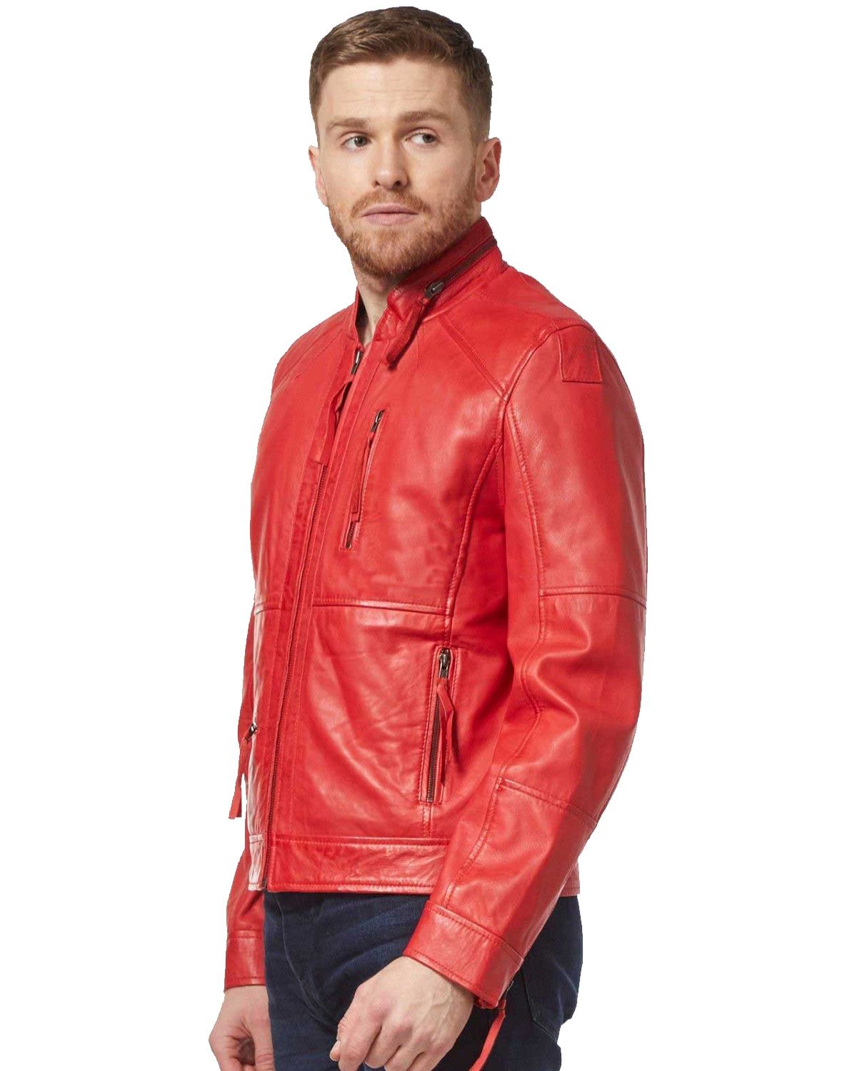 Glowrexs Men's Classic Stylish Red Biker Real Leather Jacket Sale