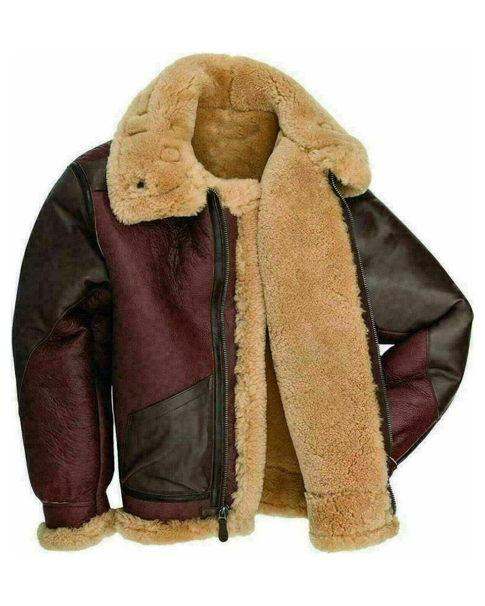 Glowrexs Men's Cockpit Maroon Genuine Sheepskin Leather Jacket Sale
