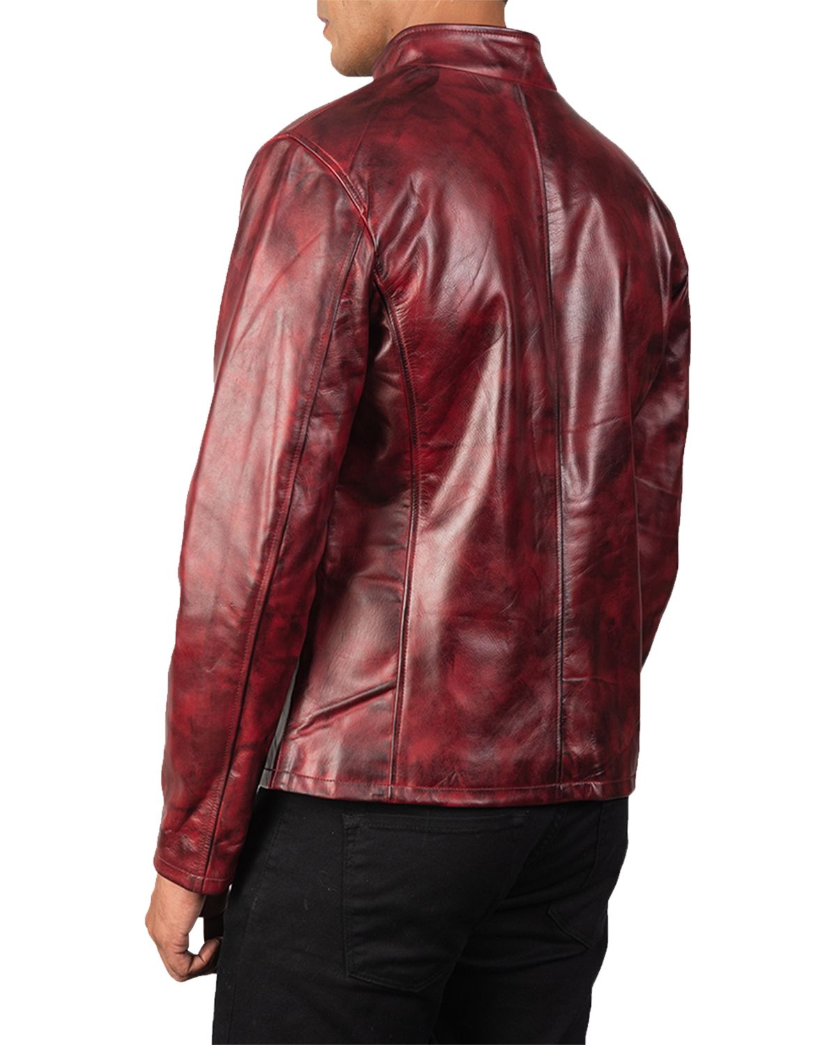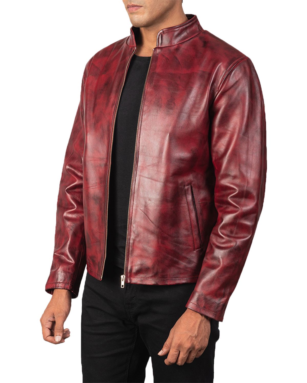 Whether you're heading to a casual gathering or seeking a statement piece for your ensemble, the Distressed Burgundy Leather Jacket encapsulates rugged elegance and modern flair, making it a must-have for every wardrobe.