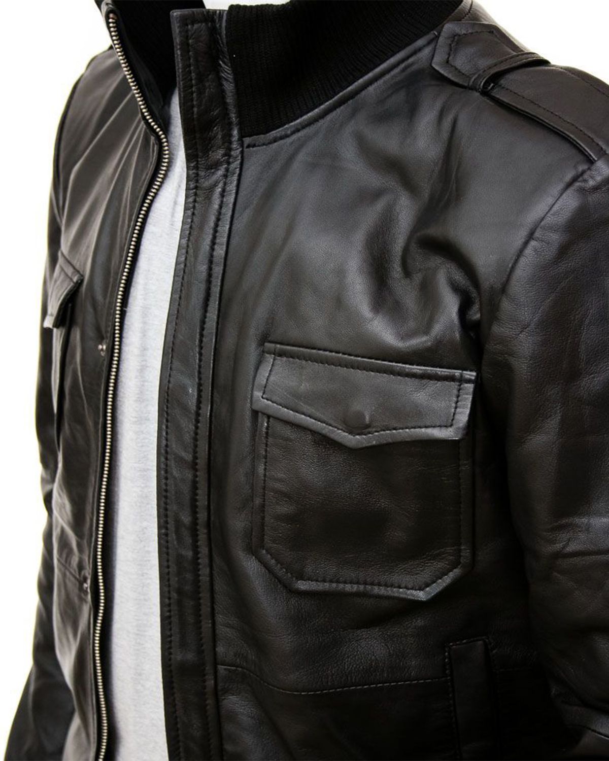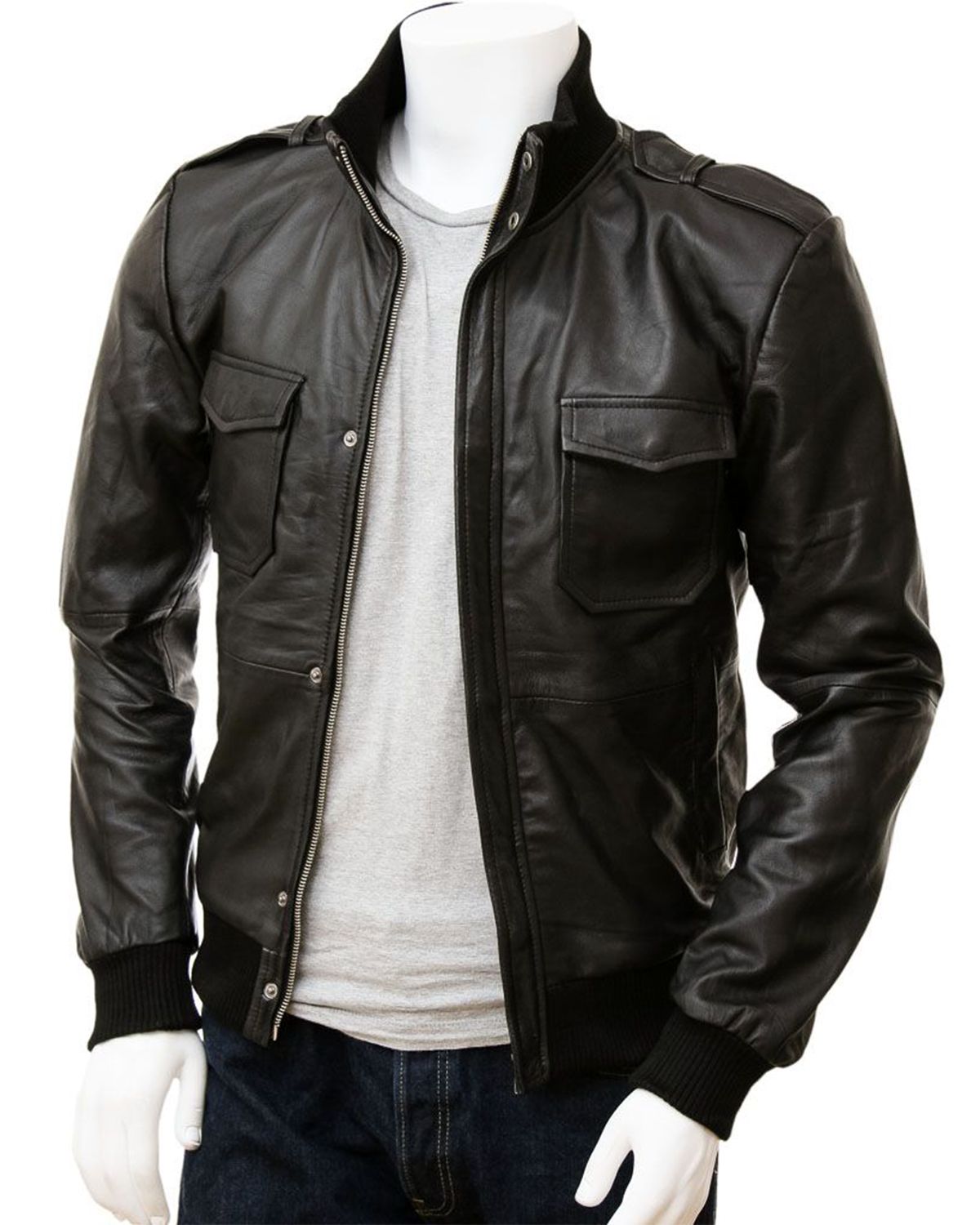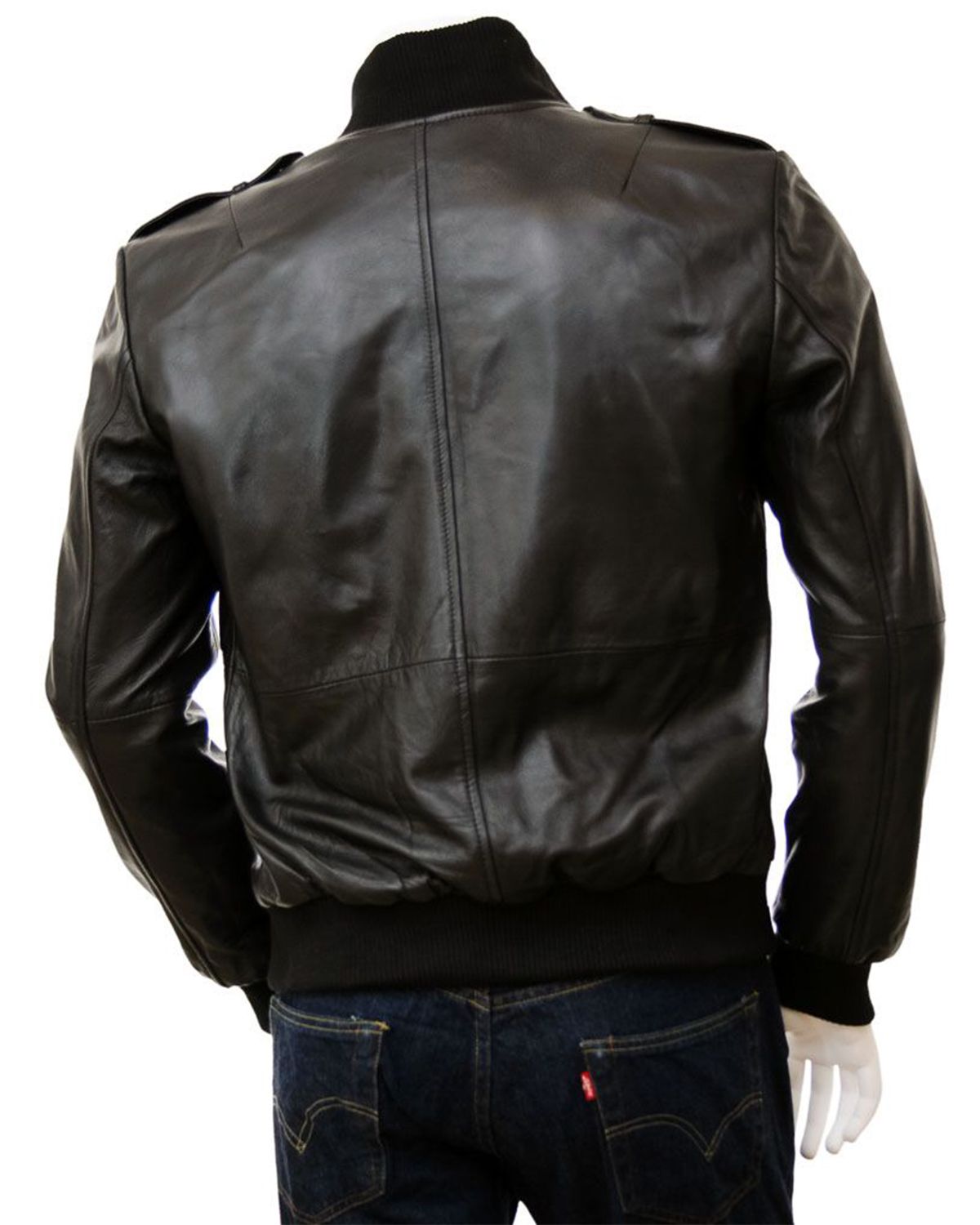Glowrexs Men's Epaulettes Shoulder Stylish Bomber Leather Jacket Sale