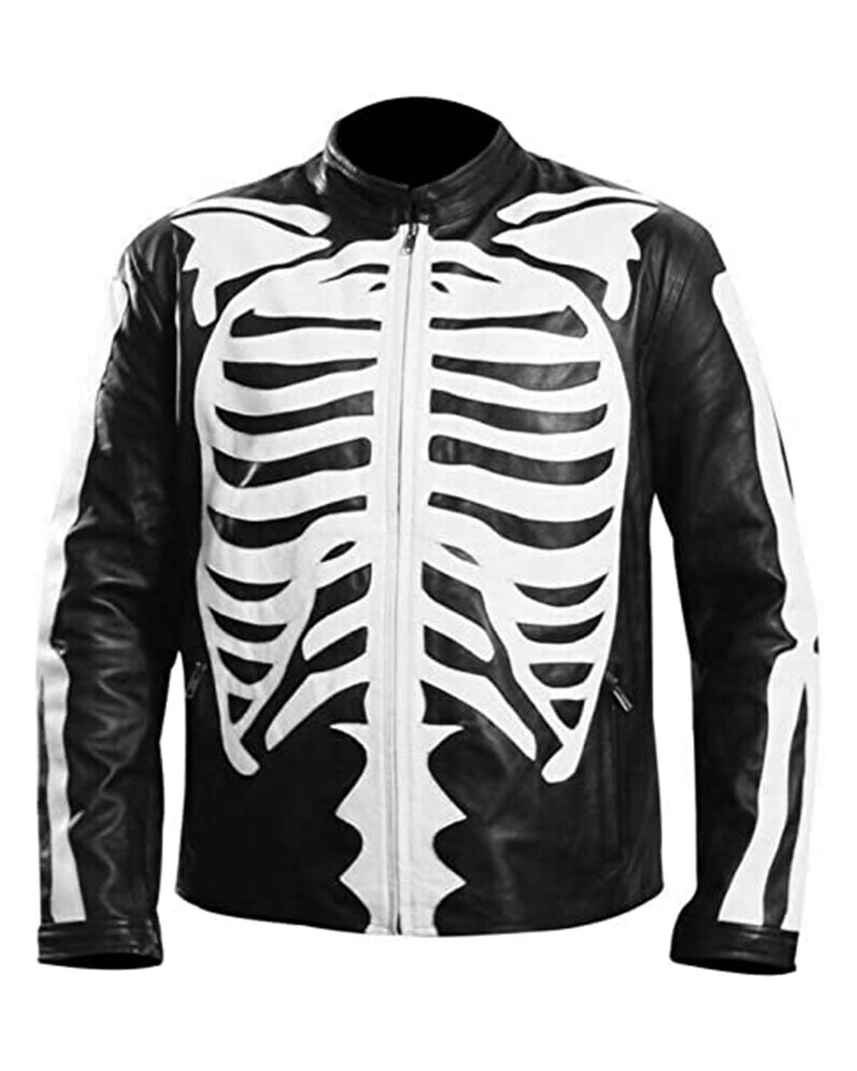 This bold outerwear piece available in a black and white and blue and white combo, this jacket features a unique skeleton bones design that adds a touch of intrigue and edginess. This jacket is made of imitation leather or real leather, depending on your option, and it is durable and stylish. The long sleeves give covering and weather protection.This jacket's zip fastening guarantees a secure and comfortable fit. The polyester inside offers a layer of comfort and improves the overall quality of the jacket.The men's skeleton bones jacket is ideal for people who wish to express their uniqueness and flair. This jacket mixes design with flare to create a standout look, whether you're a rider searching for a distinctive motorcycle jacket or someone looking for a halloween-themed costume.