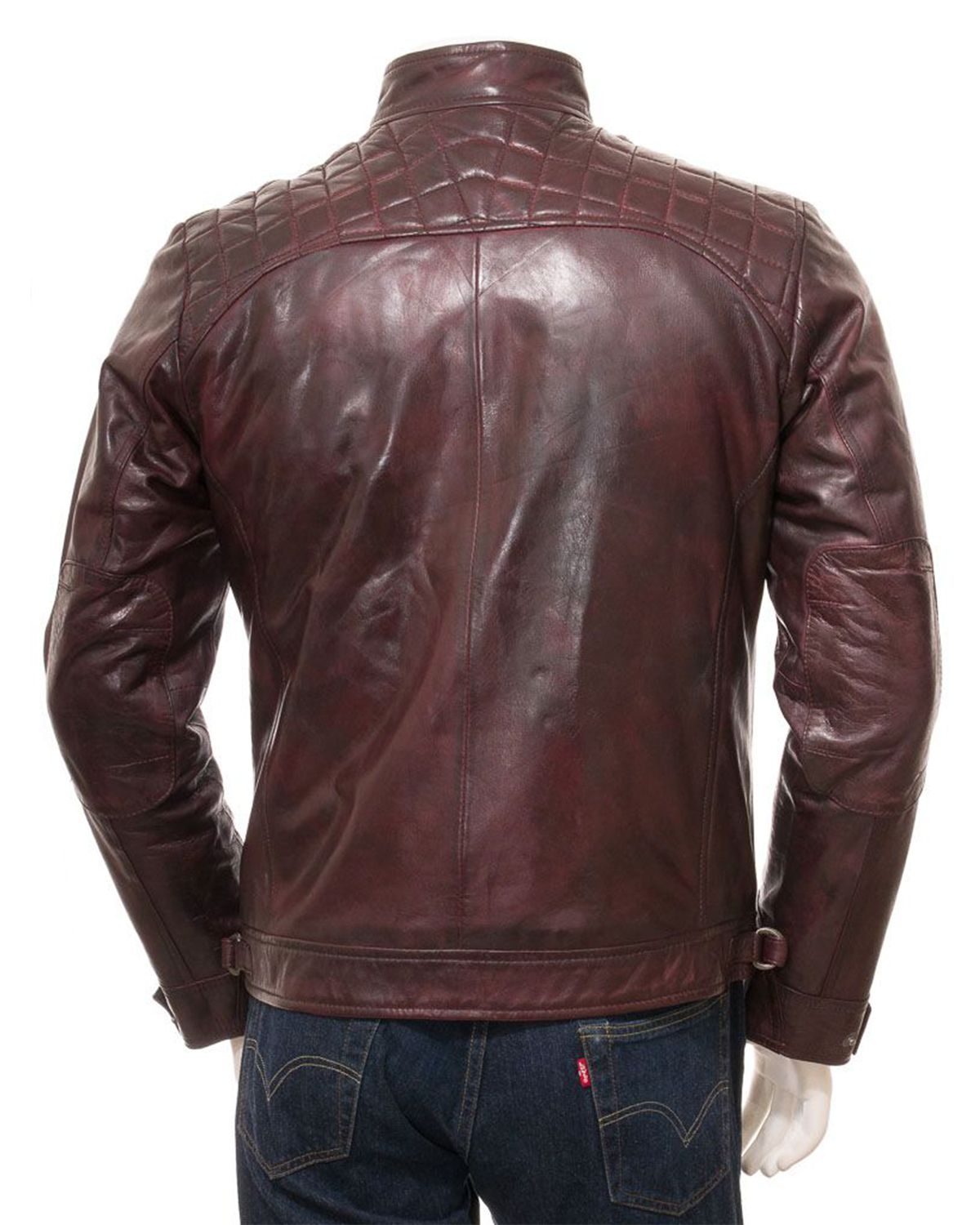 Glowrexs Men's Oxblood Quilted Shoulder Cafe Racer Biker Real Leather Jacket - Oxblood / S