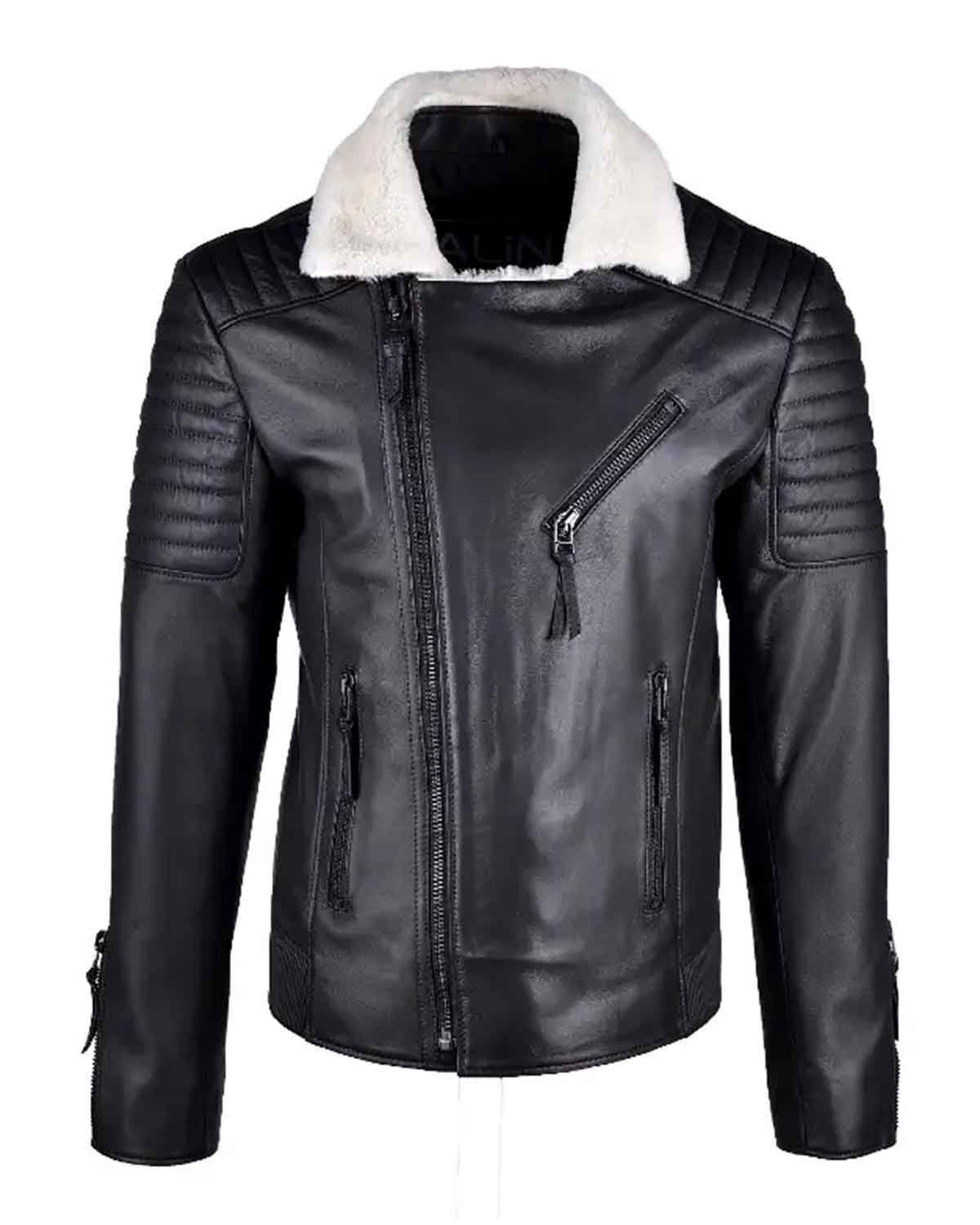 Glowrexs Mens Shearling Black Jacket With White Fur Sale