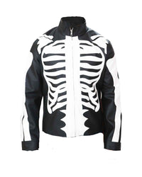 Style yourself as an upgraded boy by wearing the Men's Skeleton Leather Jacket. Made of real leather and featuring a striking black and white color. The stand-up collar adds a stylish touch, and the full zip closure assures a smart formation.