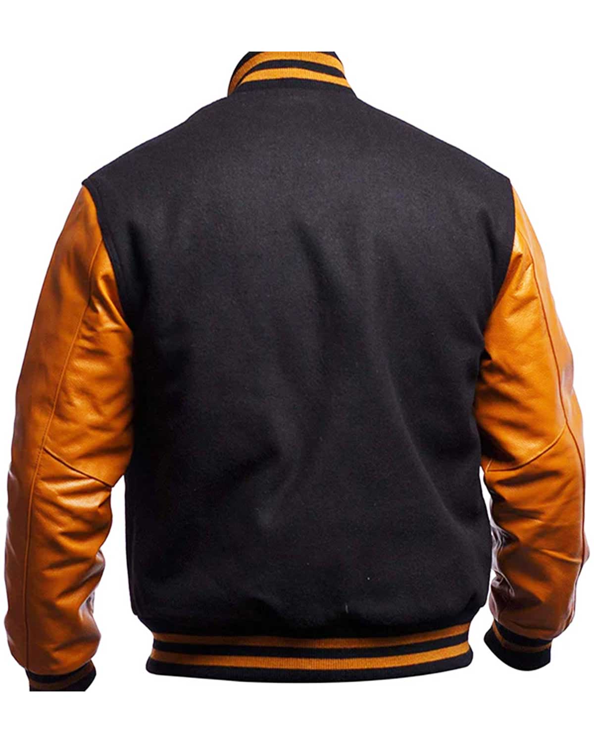 Glowrexs Men's Varsity Black and Gold Bomber Baseball Letterman Leather Jacket Sale