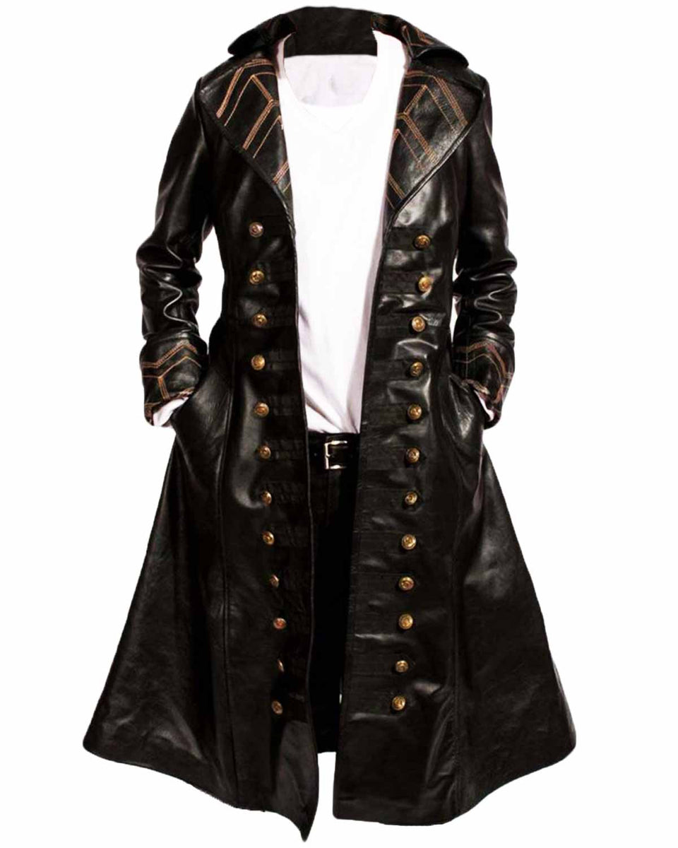Embark on a magical journey with the Once Upon a Time Captain Hook Black Trench Coat, inspired by the iconic Colin O'Donoghue. Crafted from a blend of faux leather and real leather, this coat combines fantasy and fashion.