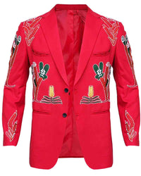 Introducing our Men's Red Suiting Fabric Jacket. This jacket is made from high-quality suiting fabric, providing a polished and refined look. The vibrant red color adds a bold and confident touch to your ensemble. The front features an open style with buttoned closure, allowing for easy and versatile wear. The lapel style collar adds a classic and sophisticated element to the jacket's design. With full-length sleeves and open hem cuffs, it offers a comfortable fit and allows for easy movement. Whether you're attending a formal event or want to elevate your everyday style, this red suiting fabric jacket is a fashionable choice that exudes elegance and charm.