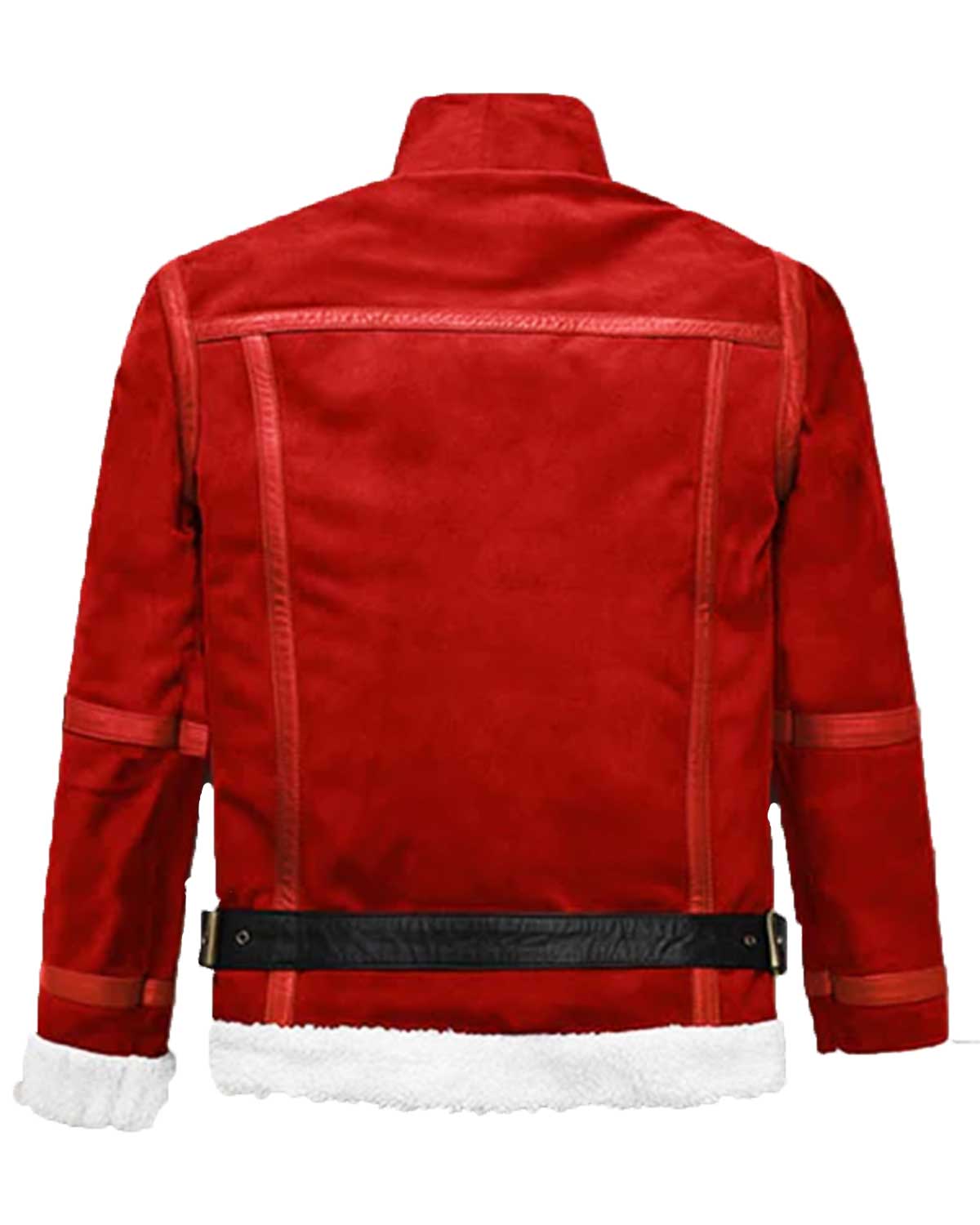 The innovative zipper-over-button closure adds a stylish edge, offering versatility in styling. Internally lined with soft shearling, Ryan Reynolds Spirited Red Jacket provides warmth and a lavish feel.