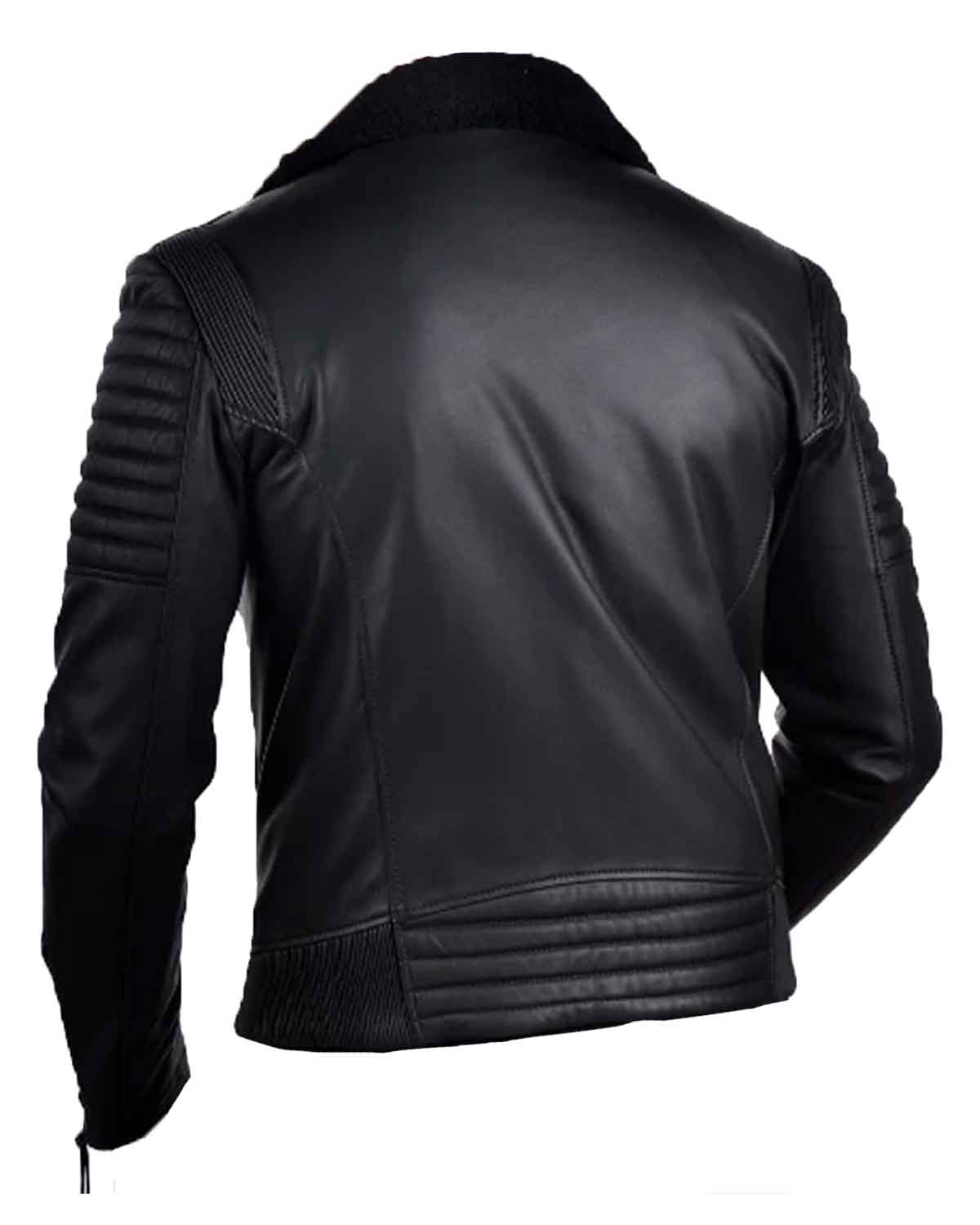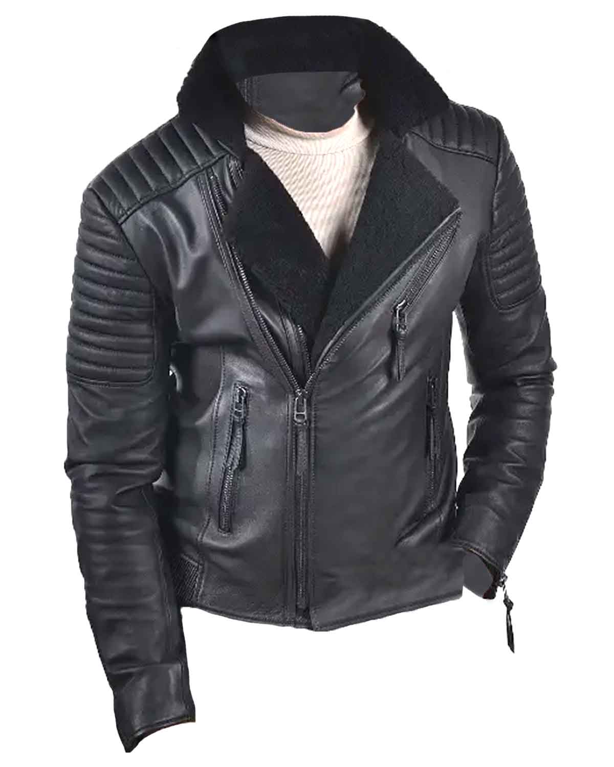 Glowrexs Shearling Black Leather Jacket For Men Sale