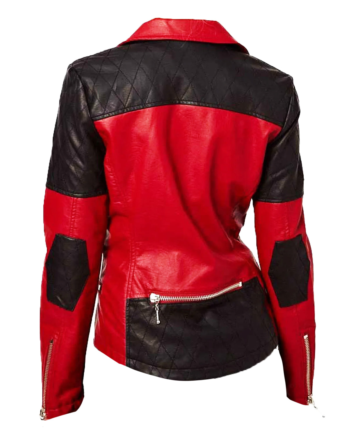 Glowrexs Women’s Asymmetrical Biker Red and Black Leather Jacket Sale
