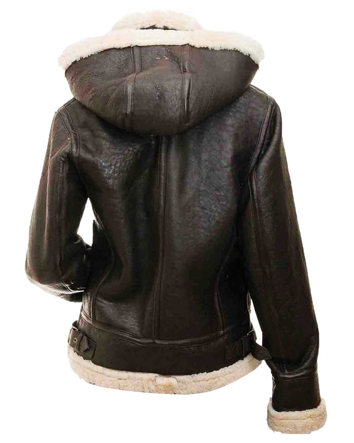 Glowrexs Women’s Shearling Brown Leather Bomber Jacket with Hood Sale