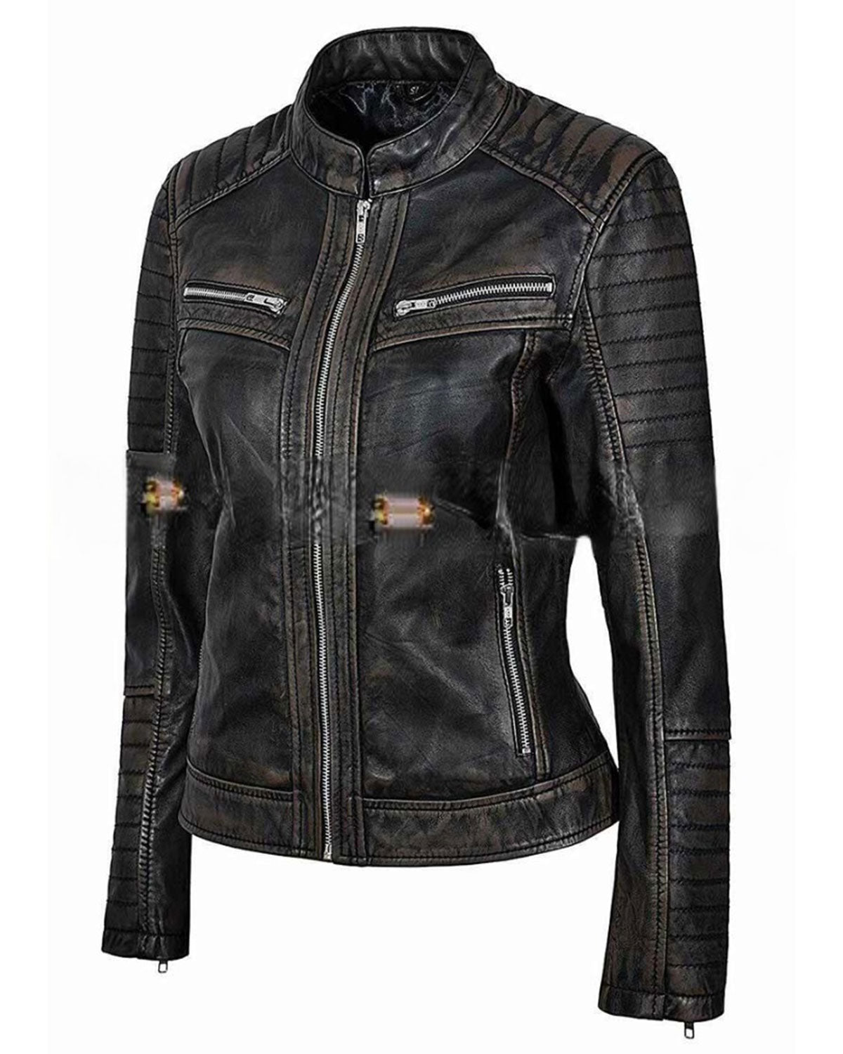 Glowrexs Womens Distressed Black Cafe Racer Jacket - XS / Black