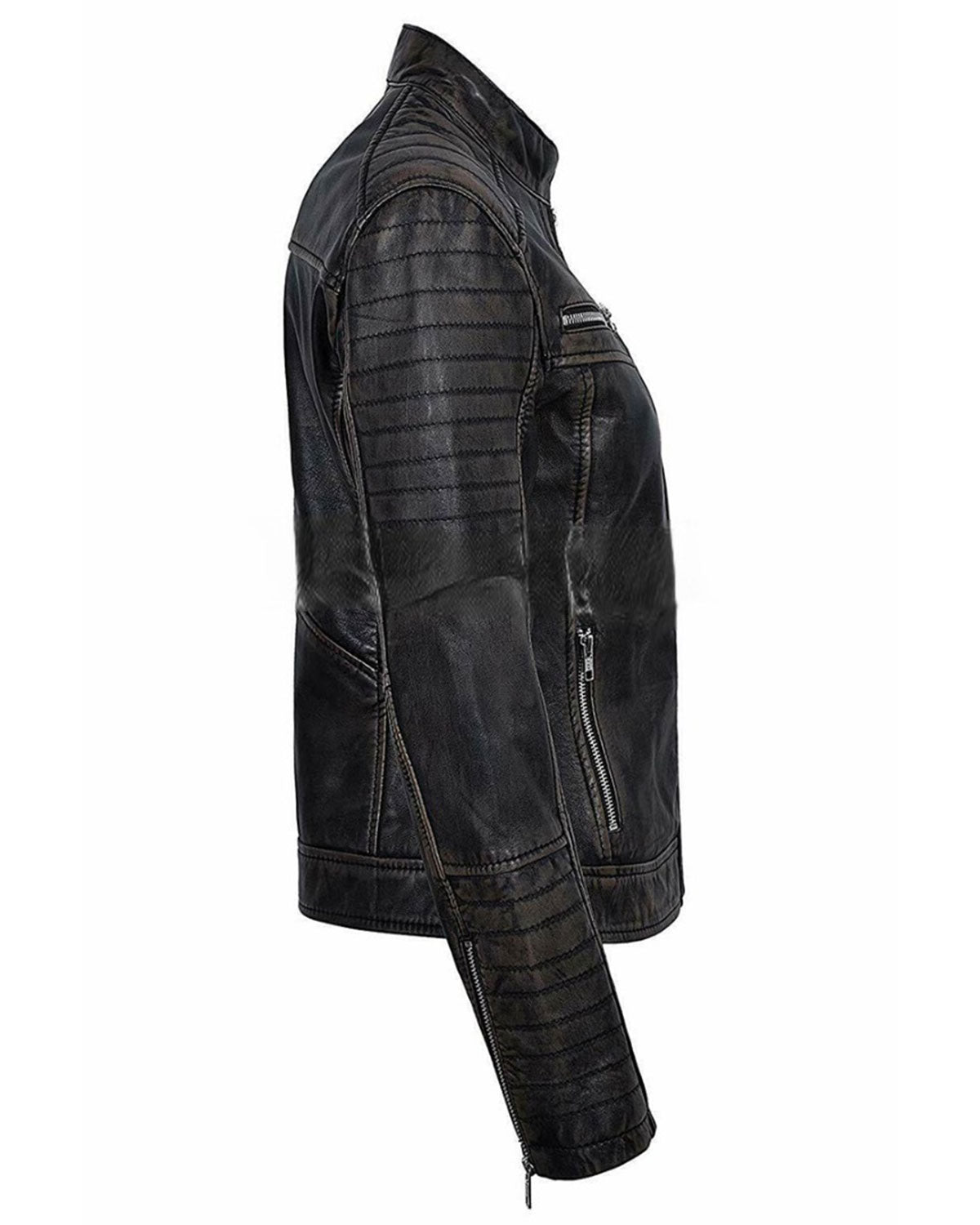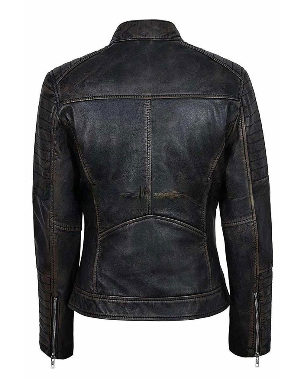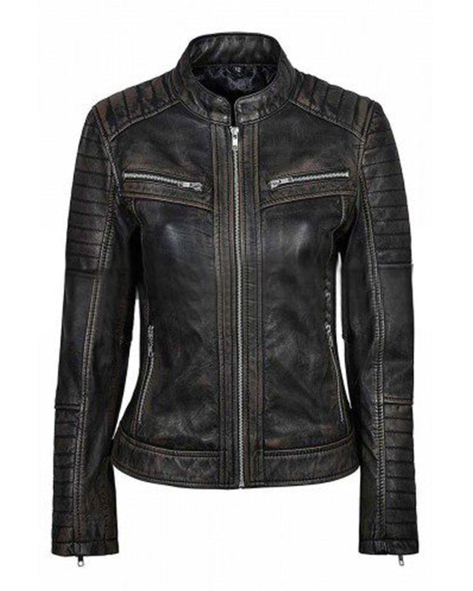 Glowrexs Womens Distressed Black Cafe Racer Jacket Sale