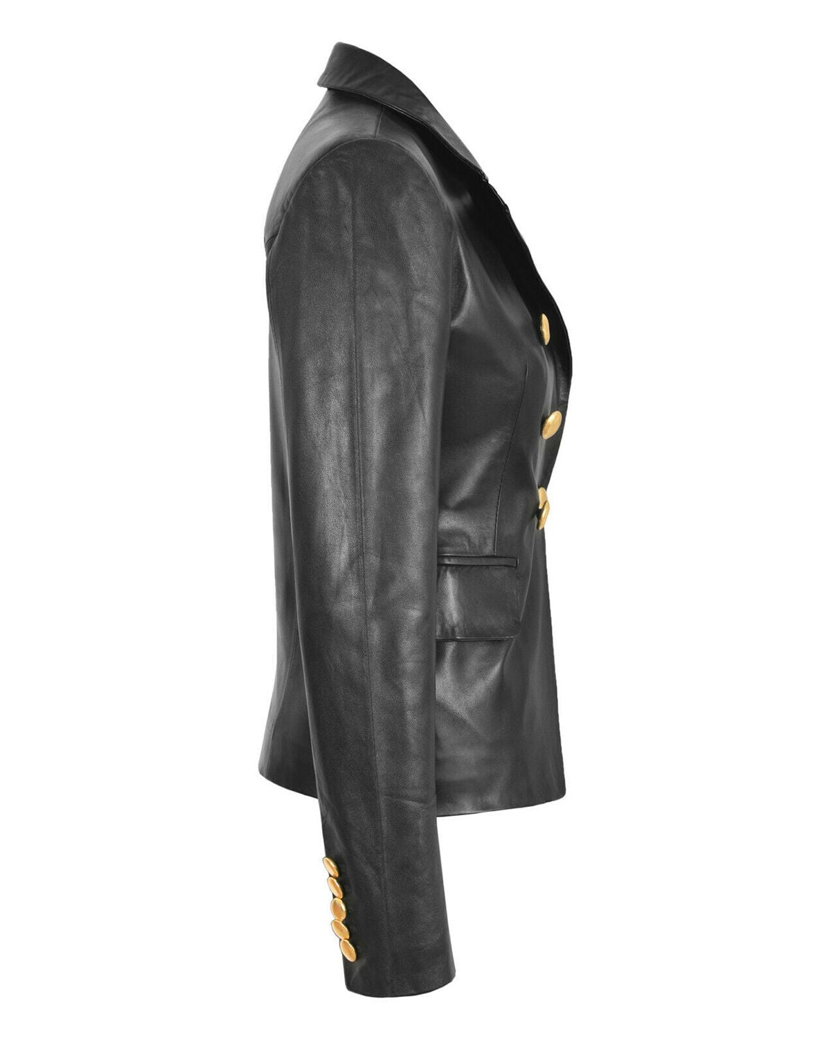Glowrexs Women's Double Breasted Leather Blazer - Black / XS