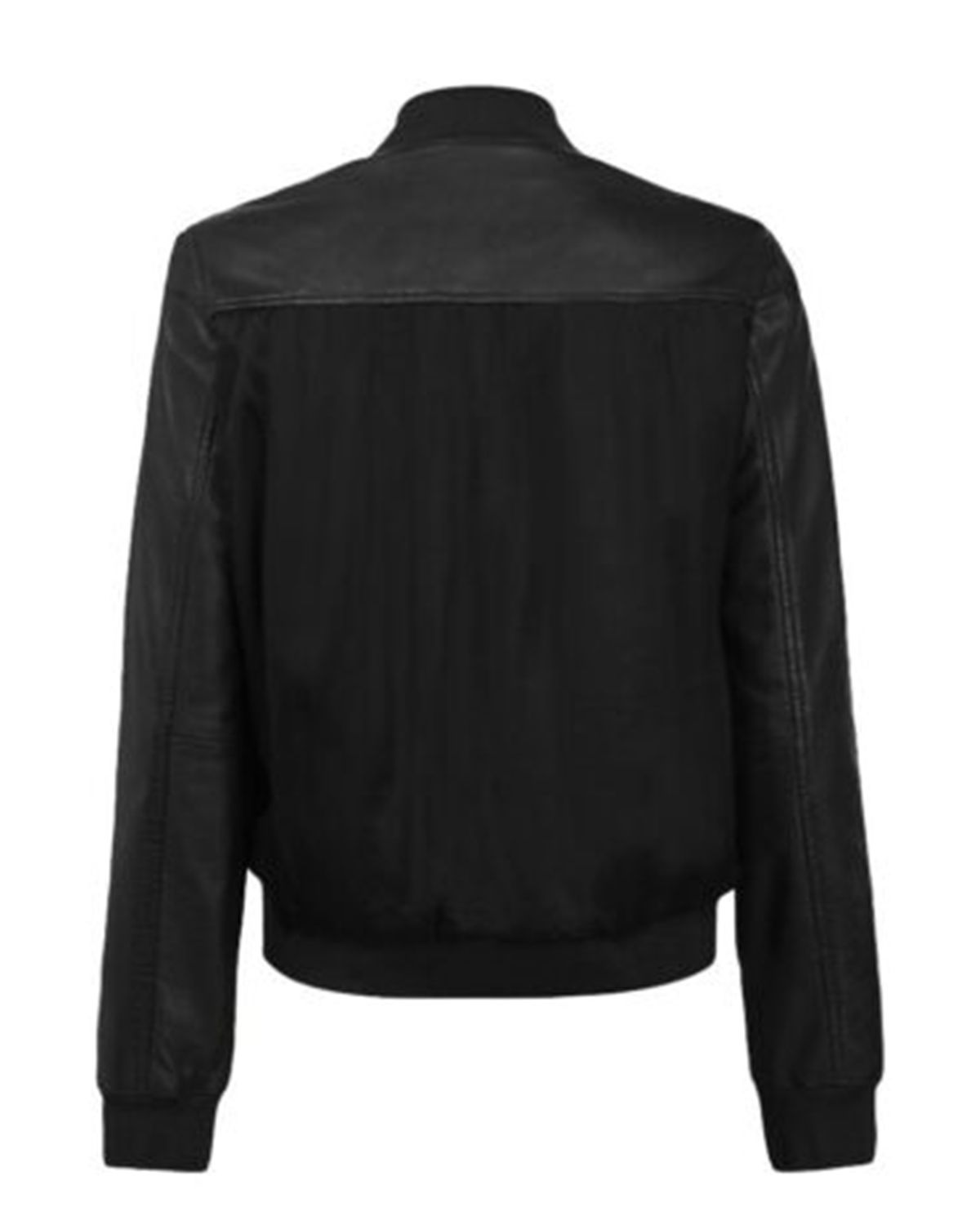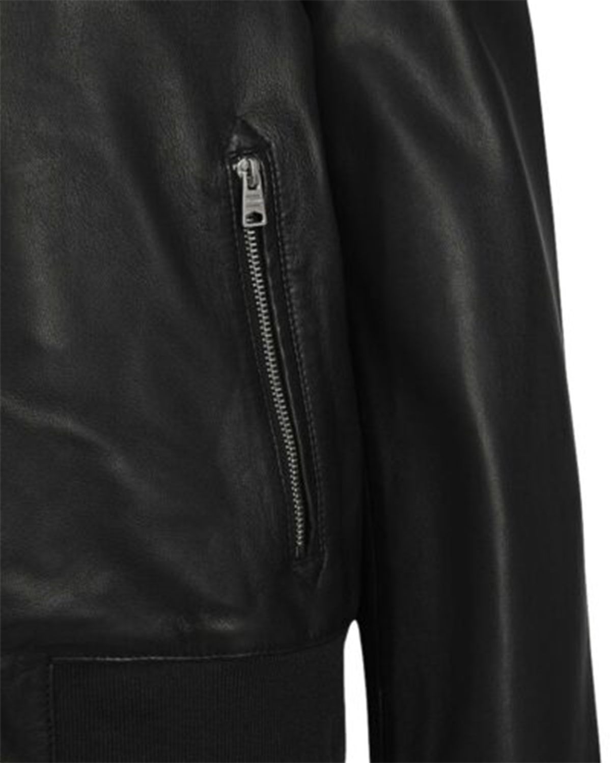 Glowrexs Womens Elegant Black Bomber Leather Jacket - Black / XS