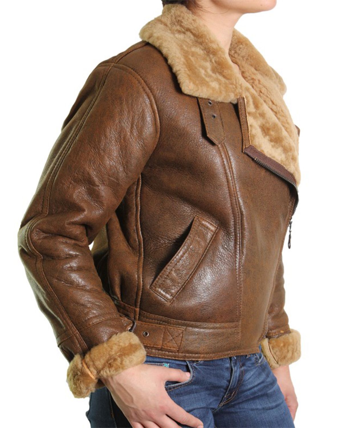 Glowrexs Womens Fur Shearling Flying Bomber Aviator Jacket Sale