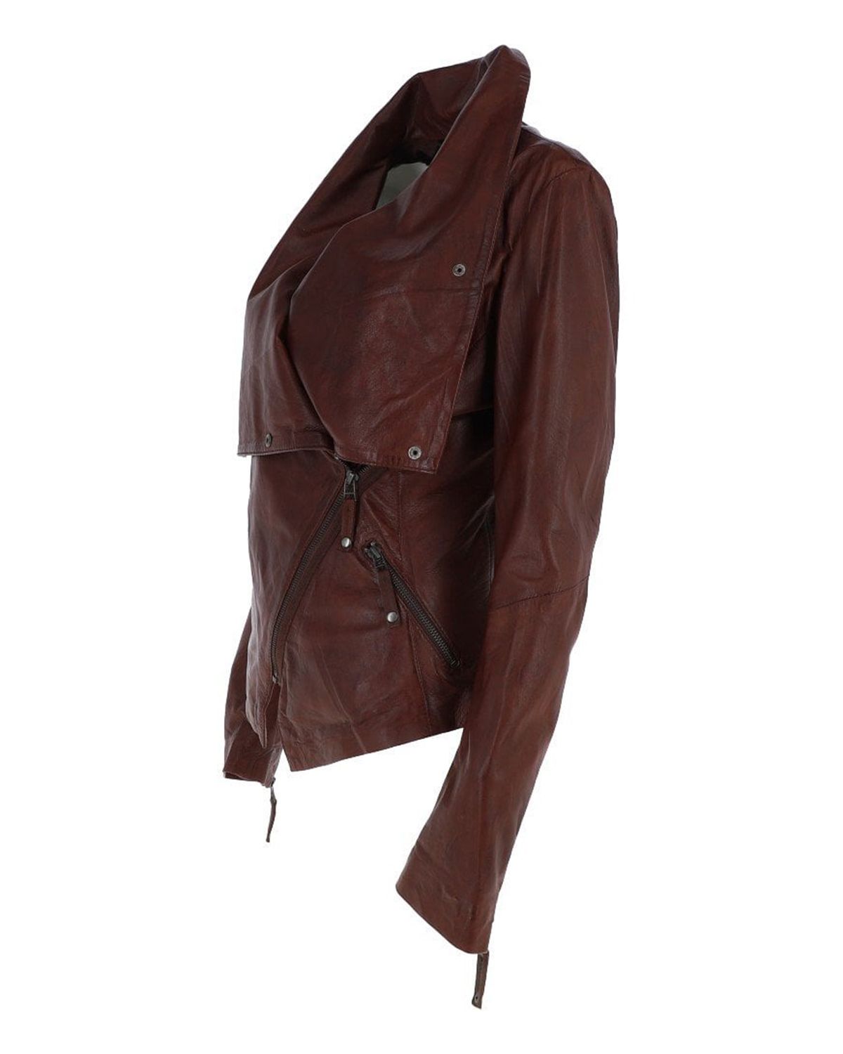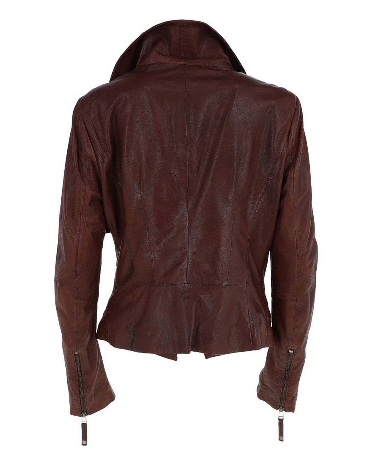 Glowrexs Women's Oxblood Biker Leather Jacket - Oxblood / XS