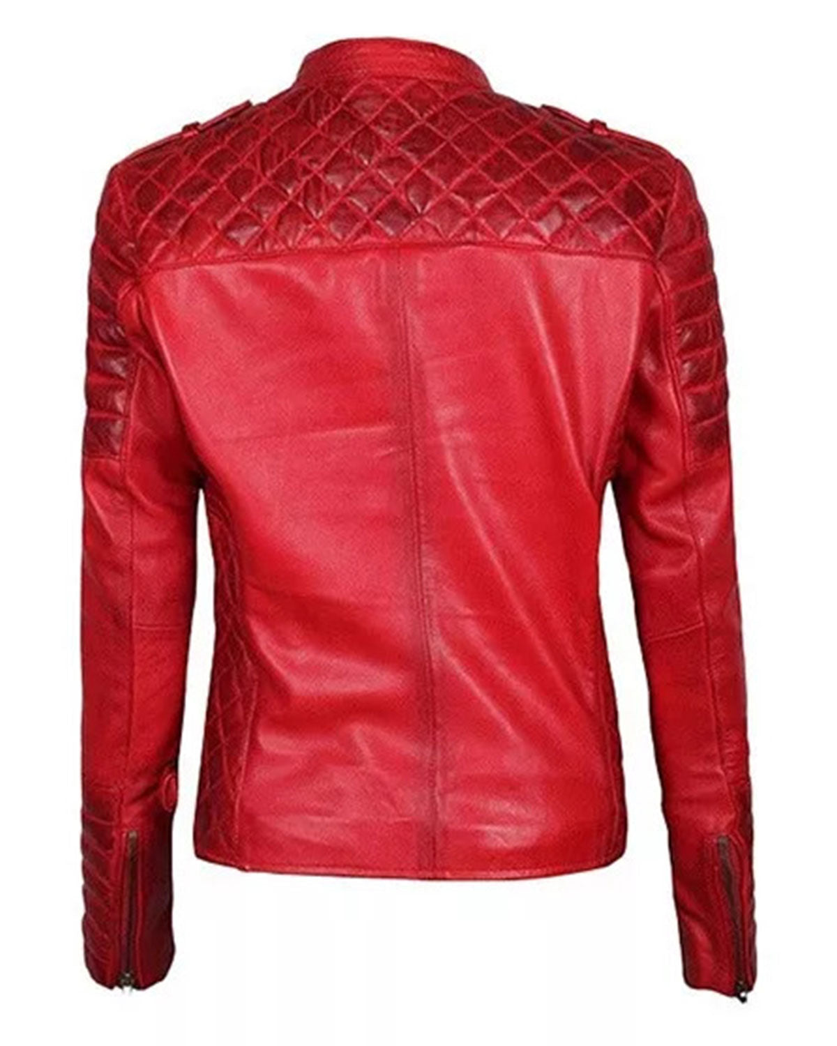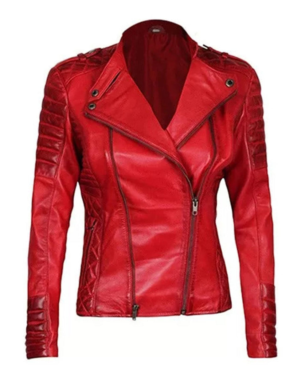 For motorcycle enthusiasts, this asymmetrical red lambskin leather jacket is the perfect choice. Crafted with high-quality fabrics, original hardware, and practical pockets, it combines strength and durability with a practical and stylish design. Gear up for your next ride with this red quilted leather jacket for women and enjoy fantastic discounts in our ongoing winter sale. Be sure to consult the size guide before making your online purchase.