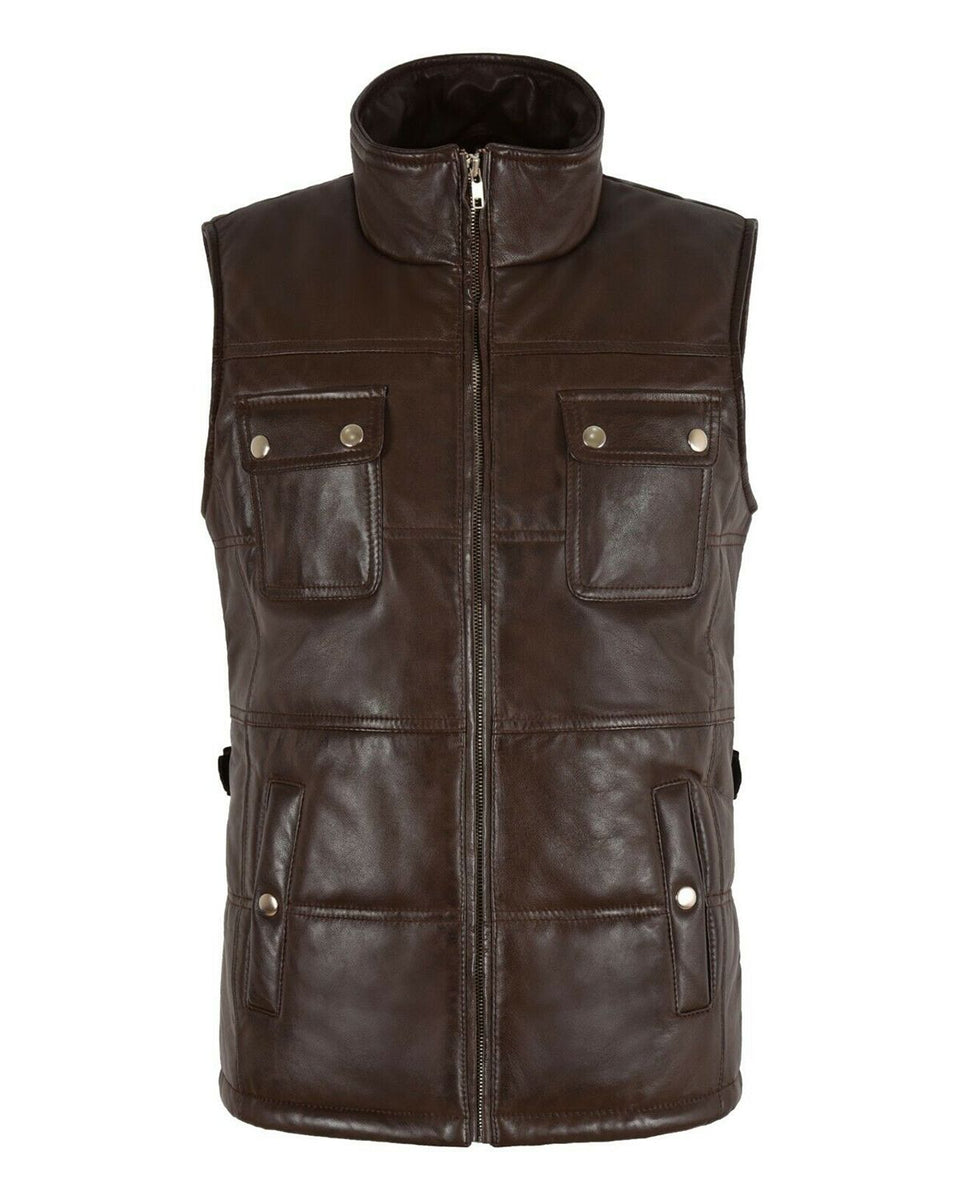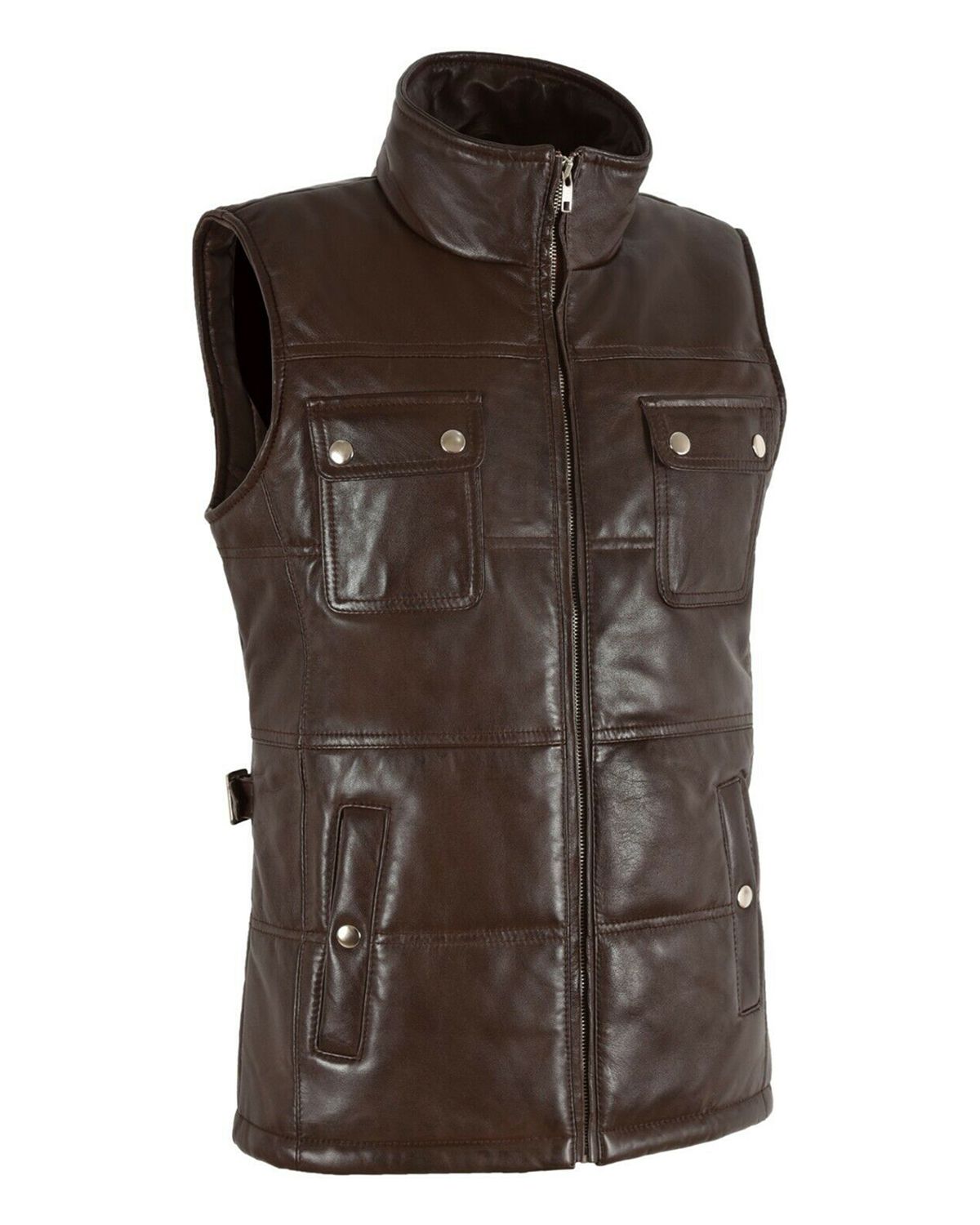 Elevate your style with our Brown Leather Vests for Women, a versatile addition to your wardrobe. Crafted from 100% genuine sheepskin leather, this vest exudes both quality and style. The regular fit and front zipper closure make it easy to layer over your favorite outfits. It features a stand collar and a stylish padded design that adds a touch of sophistication to your look. With two side pockets and two front chest pockets, you'll have plenty of space to keep your essentials close. Whether you're dressing up or going for a casual look, this vest is the perfect choice for fashionable women.
