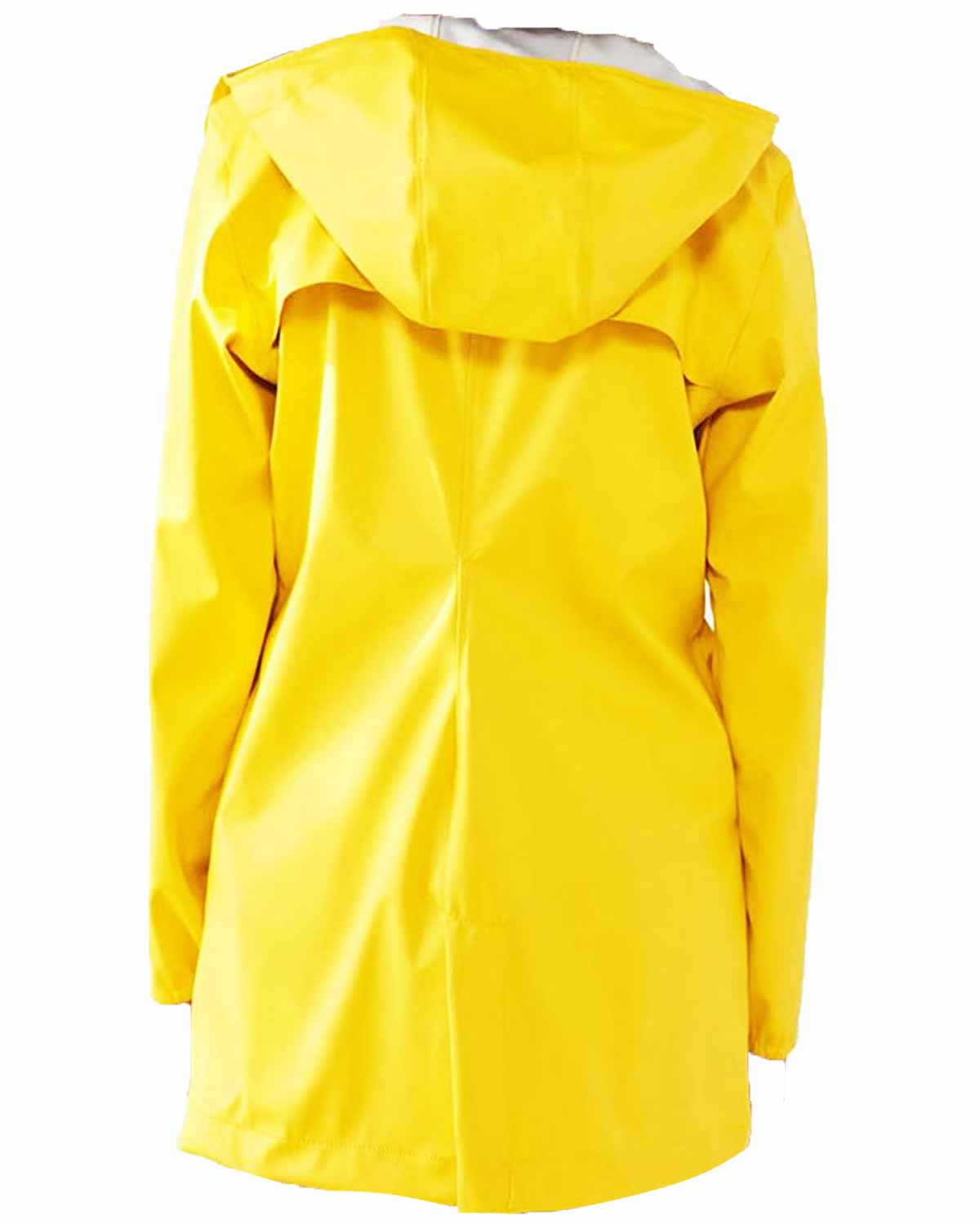 Zoey's Extraordinary Playlist showcases Jane Levy in a stunning Yellow Raincoat, worn by her character Zoey Clarke. Crafted from durable nylon material, this vibrant raincoat stands out in a cheerful yellow color. The attached hoodie adds a helpful touch, making it suitable for variable weather conditions. The front features a snap tab style buttoned closure, ensuring a secure and stylish fit. Inside, a soft viscose lining enhances comfort. The Playlist Jane Levy Yellow Raincoat incorporates two front side waist flapped pockets, providing both functionality and style. With full-length sleeves and open hem style cuffs, this piece boasts fine quality stitching, reflecting attention to detail in every aspect of its design.