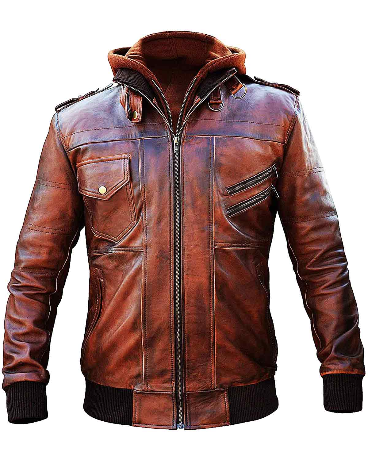 Presenting the Men's Slim Fit Bomber Hooded Vintage Brown Biker Genuine Leather Jacket. The deep brown color of this hoodie combines style with functionality. Constructed using real leather.