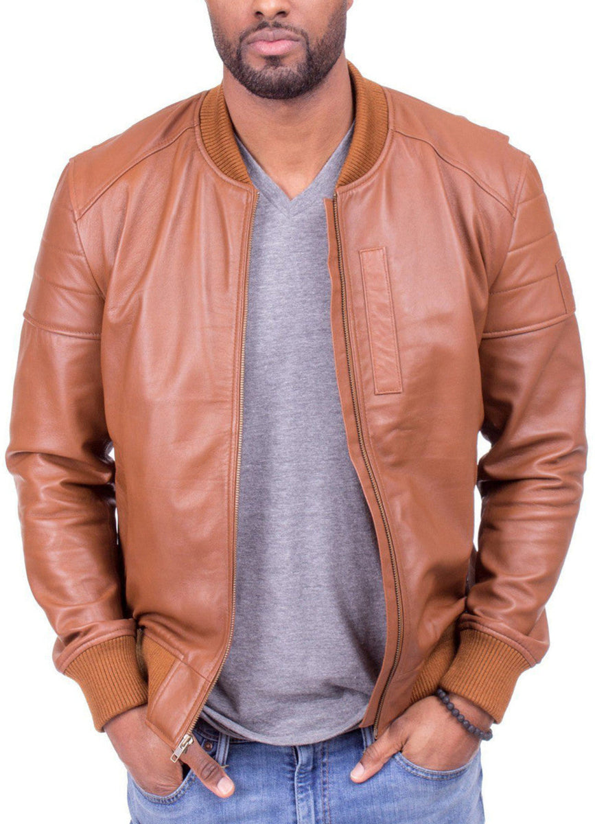 Mens Biker Bomber Leather Jacket - Brown / Real Leather / XS