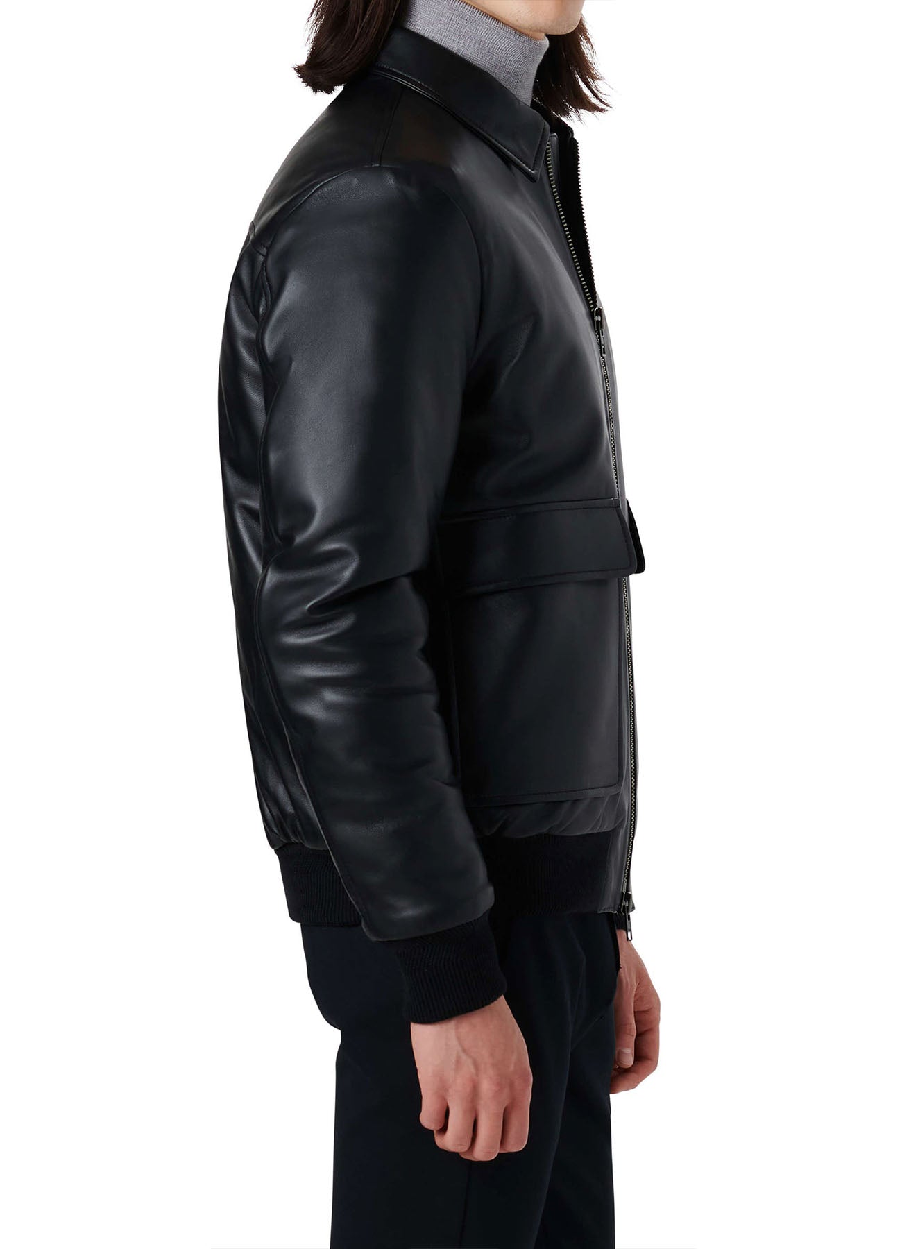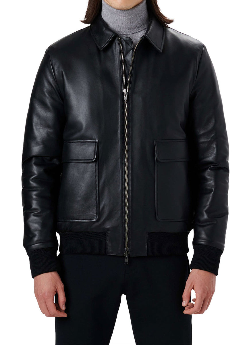 Mens Deep Black Smooth Bomber Leather Jacket Sale