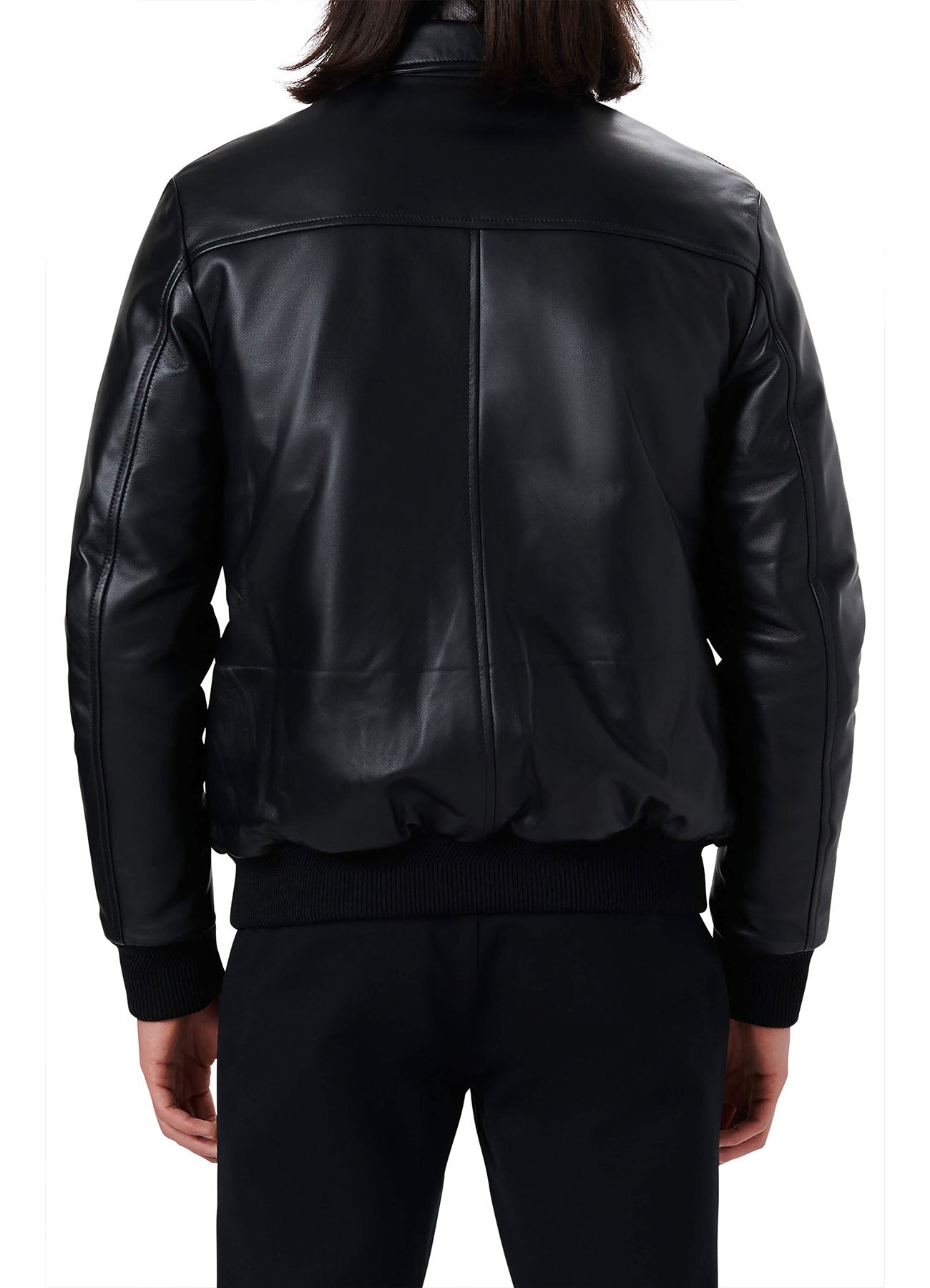Mens Deep Black Smooth Bomber Leather Jacket - X-Small / Black