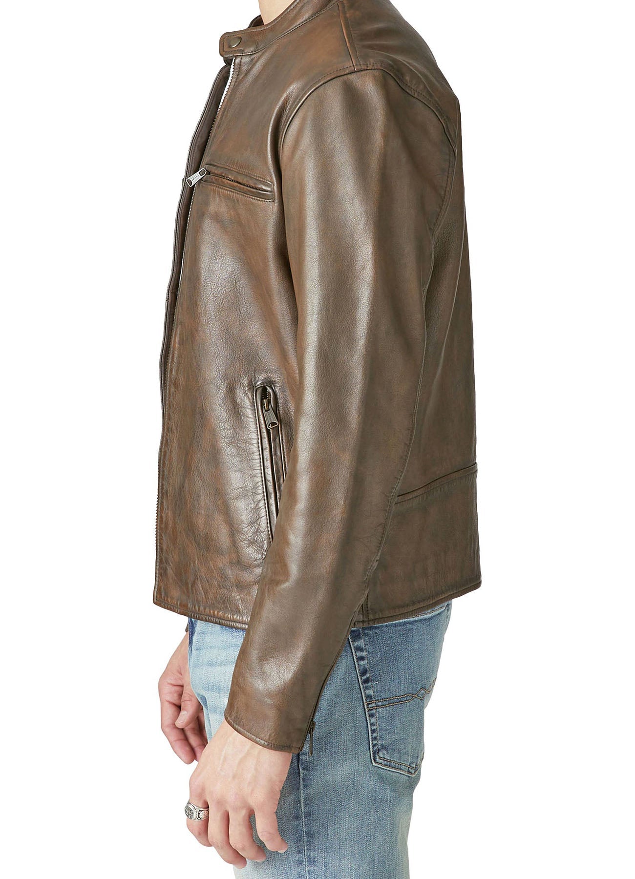 Mens Khaki Color Biker Leather Jacket - X-Small / Khaki