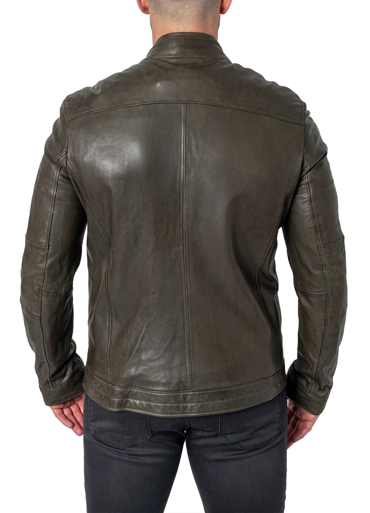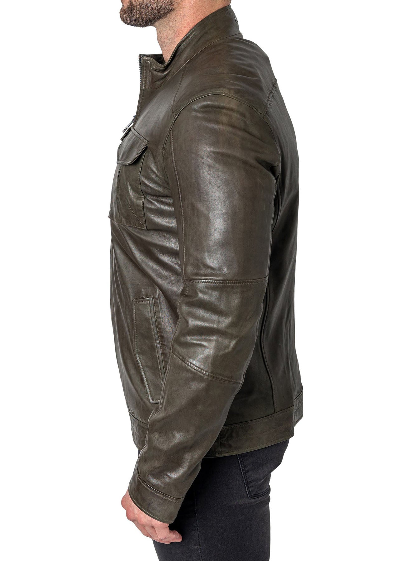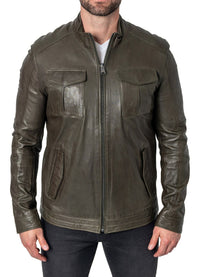 Mens Military Style Olive Green Leather Jacket Sale