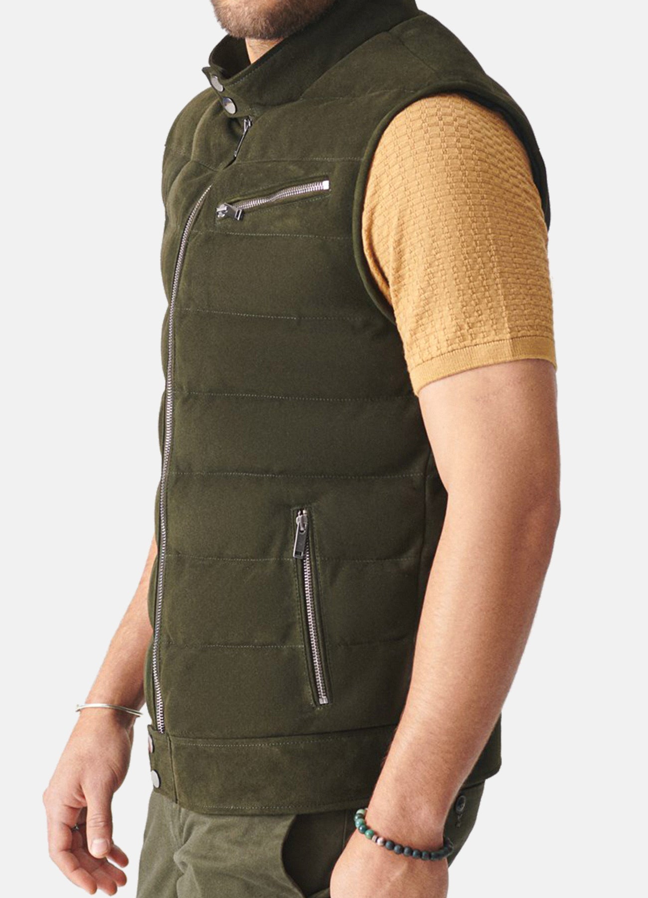 Mens Seaweed Green Suede Leather Vest Sale
