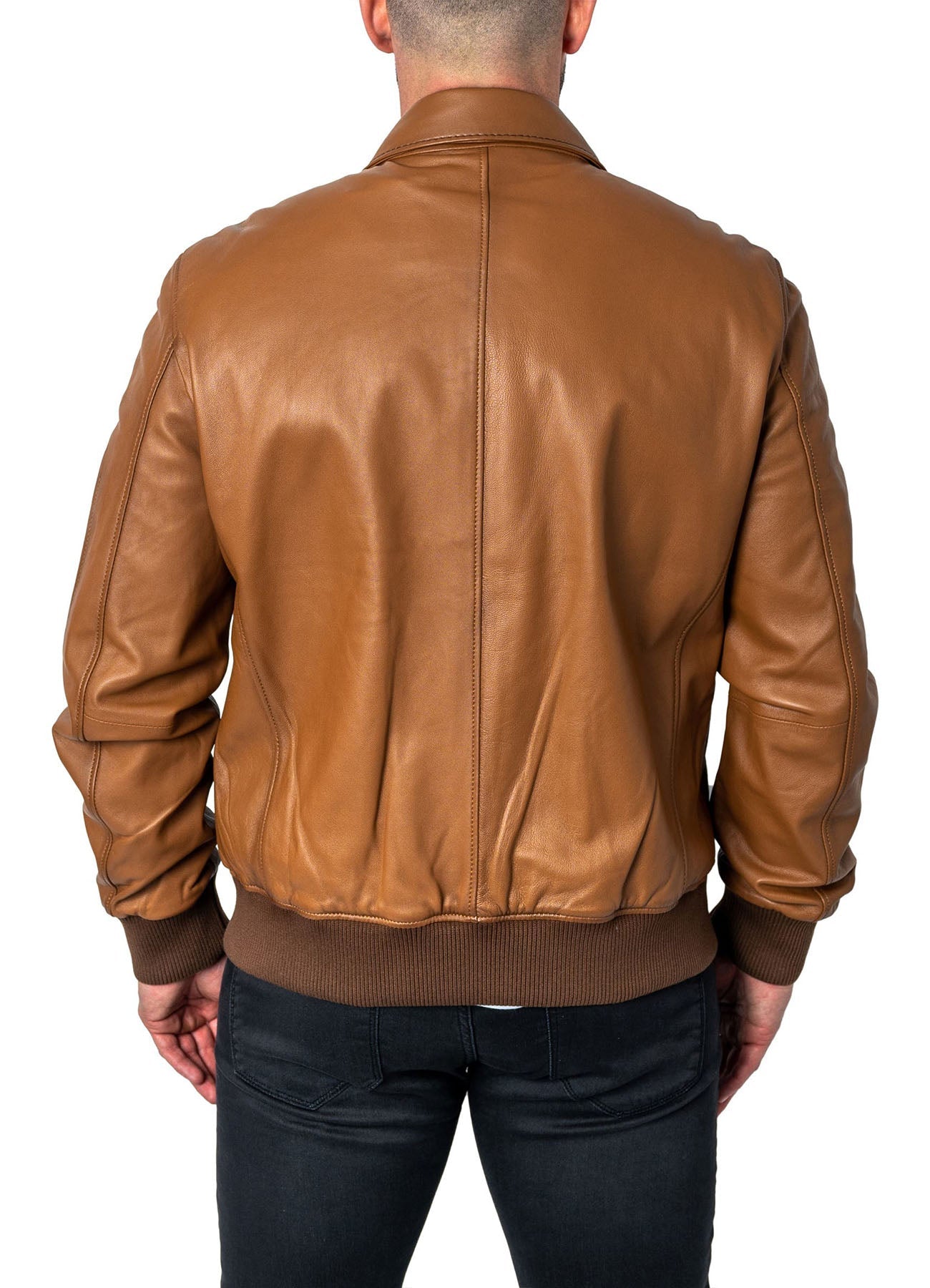 Mens Soft Vintage Bomber Leather Jacket - X-Small / Tan