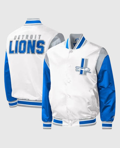Throwback Warm Up Pitch Detroit Lions Varsity Satin Jacket Sale
