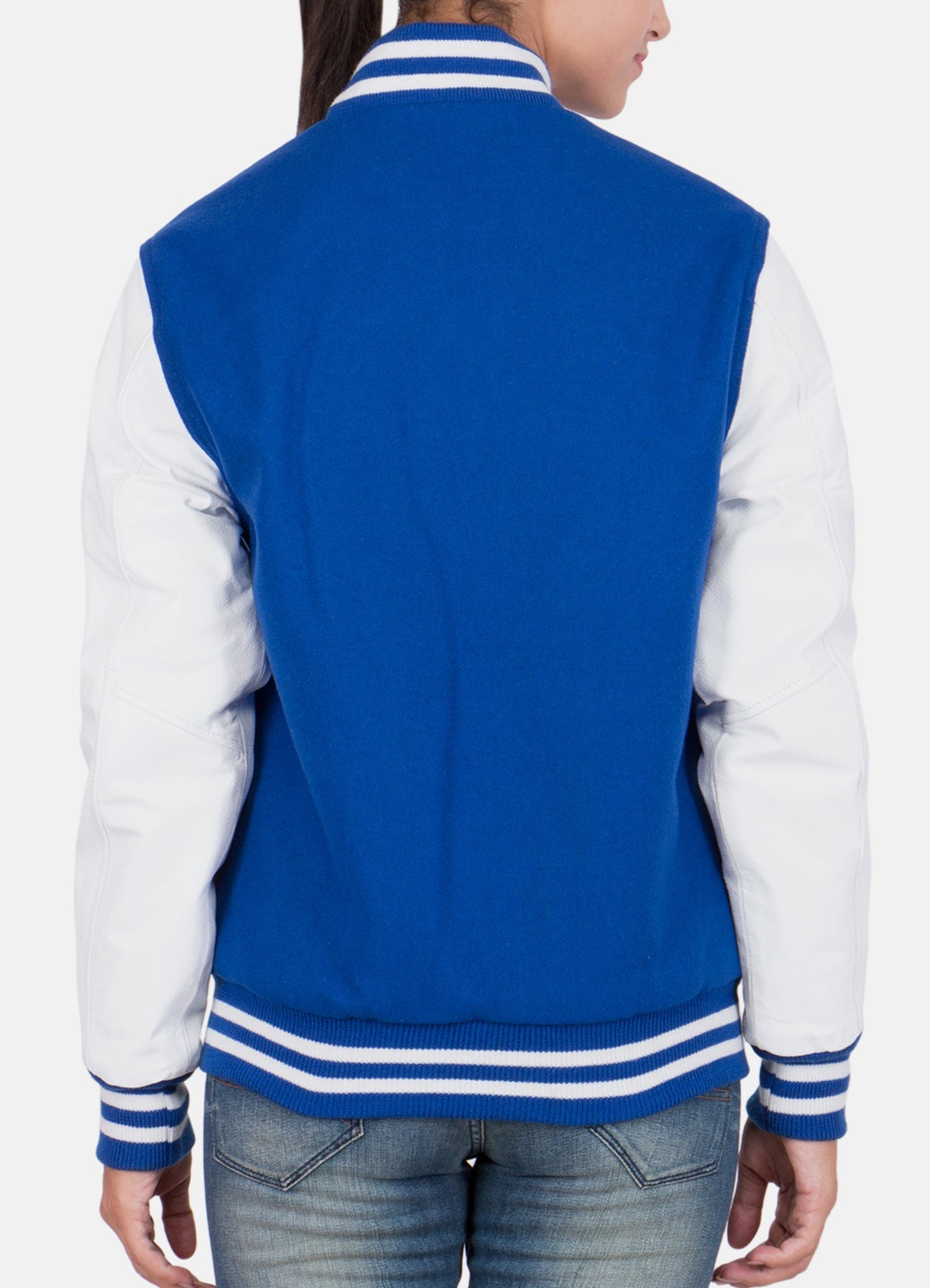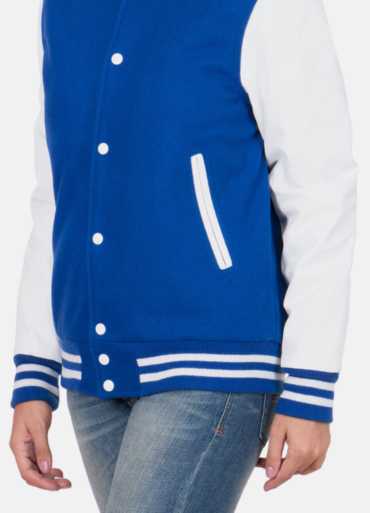 Womens Casual Blue and White Varsity Jacket - X-Small / Blue and White
