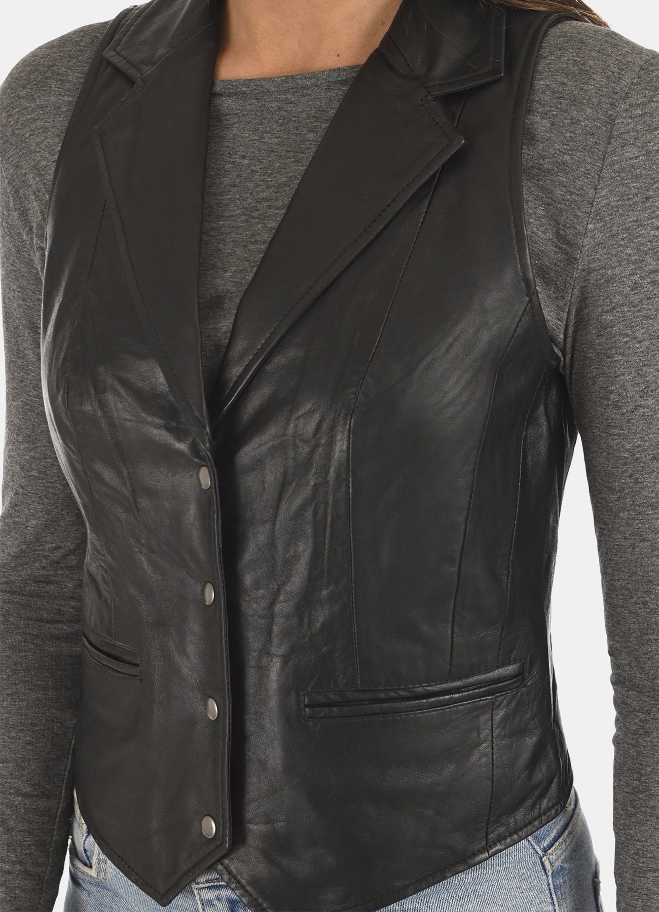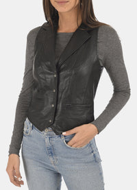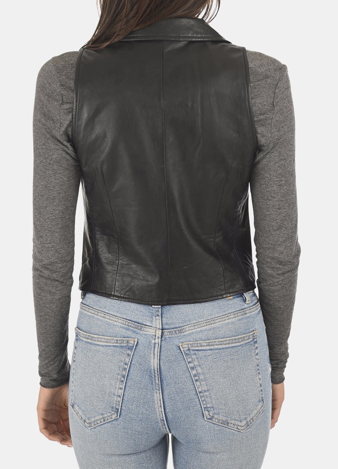 Womens Charcoal Black Leather Vest - X-Small / Black