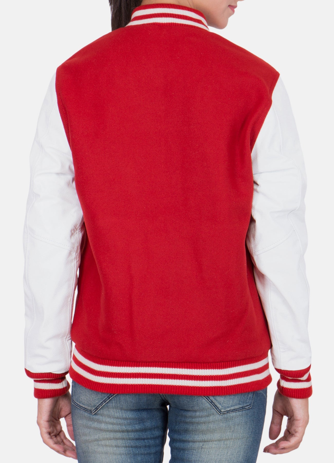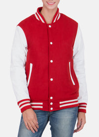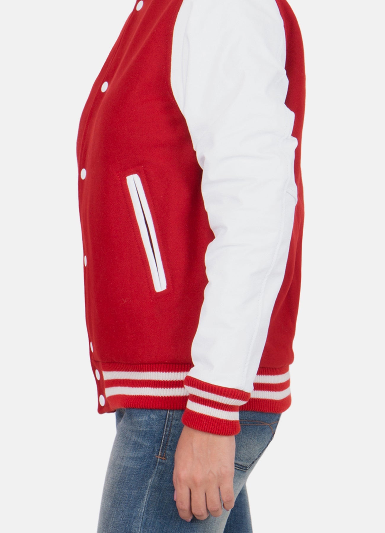 Womens Classic Red and White Varsity Jacket - X-Small / Red and White