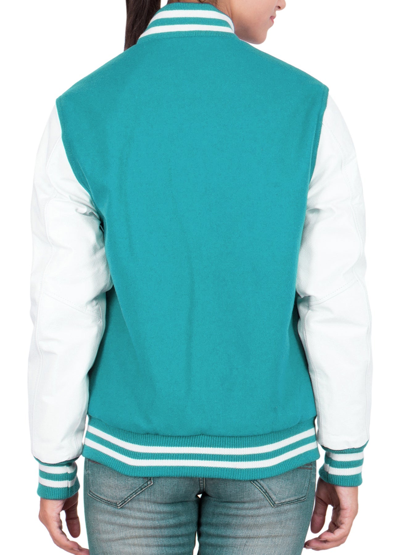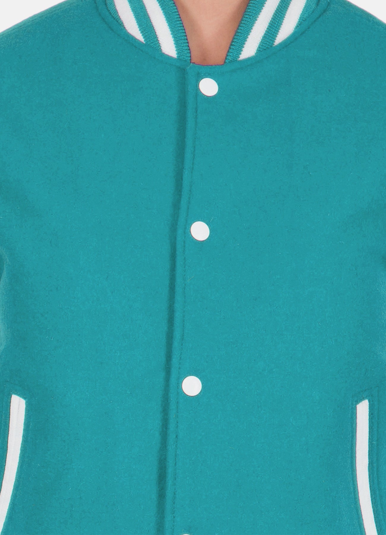 Womens Cyan and White Varsity Jacket - X-Small / Cyan and White