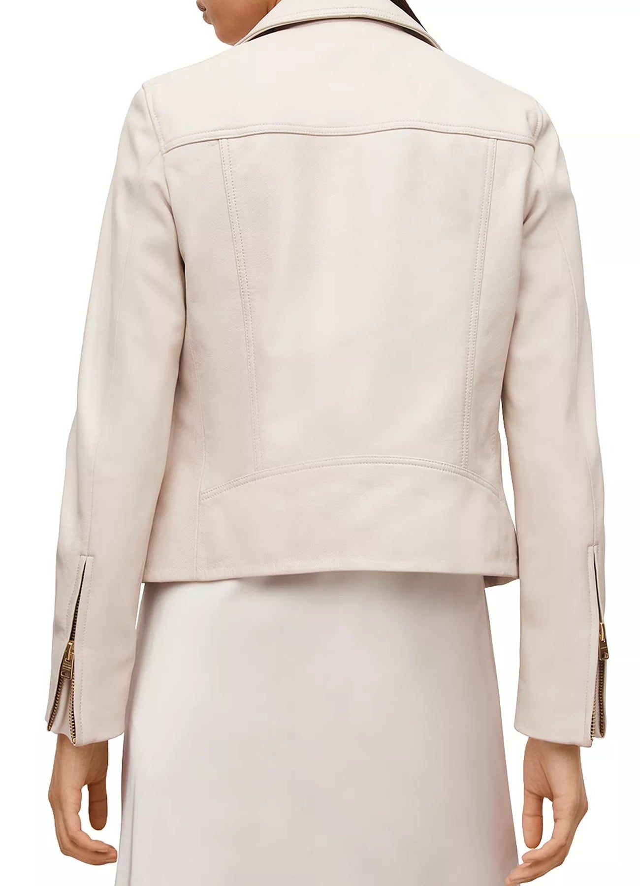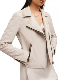 Womens Off White Biker Leather Jacket - X-Small / Off White