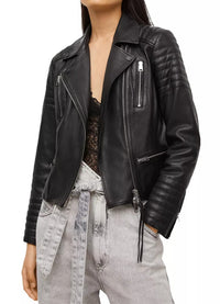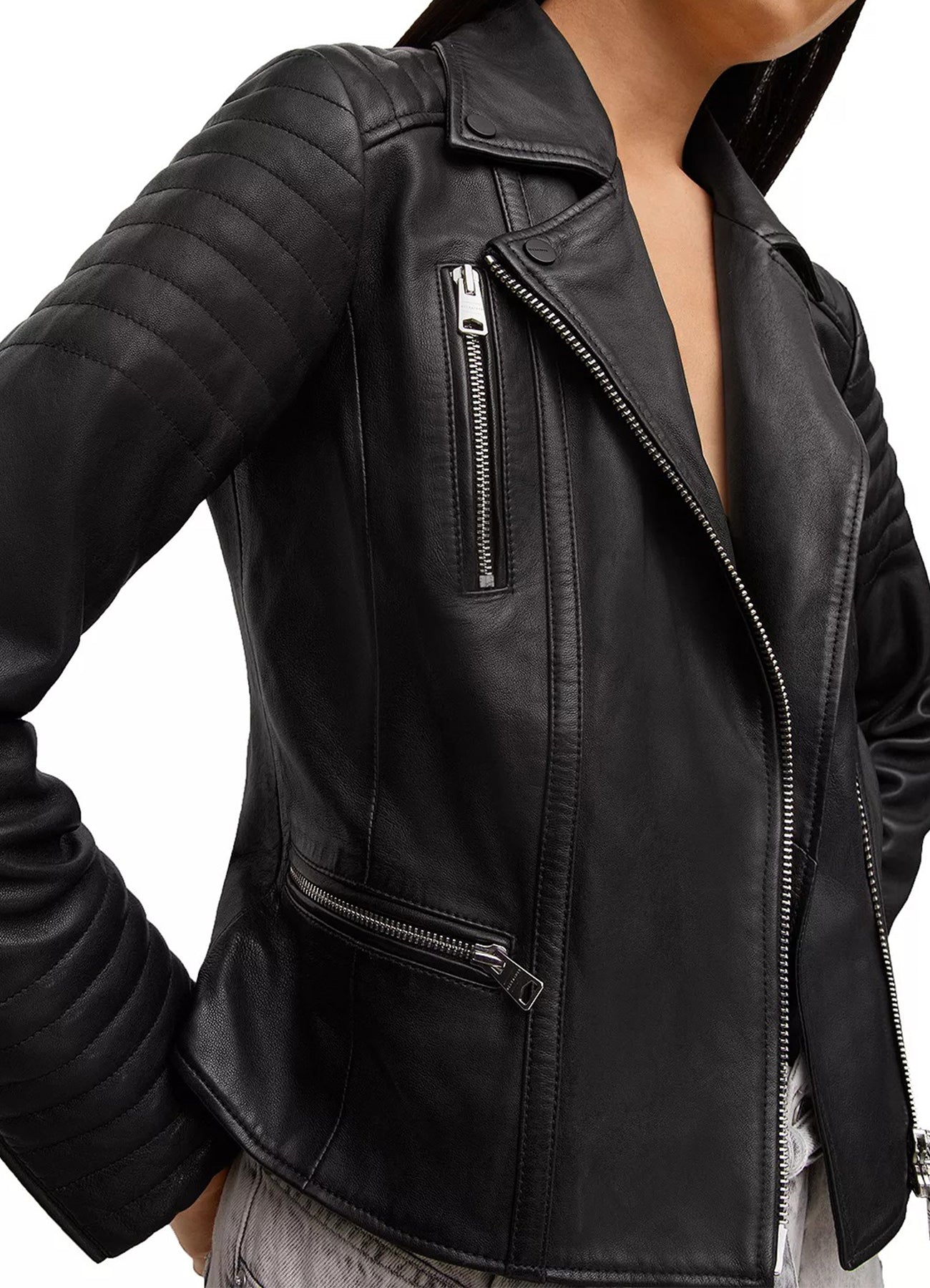 Womens Quilted Sleeves Black Biker Leather Jacket Sale