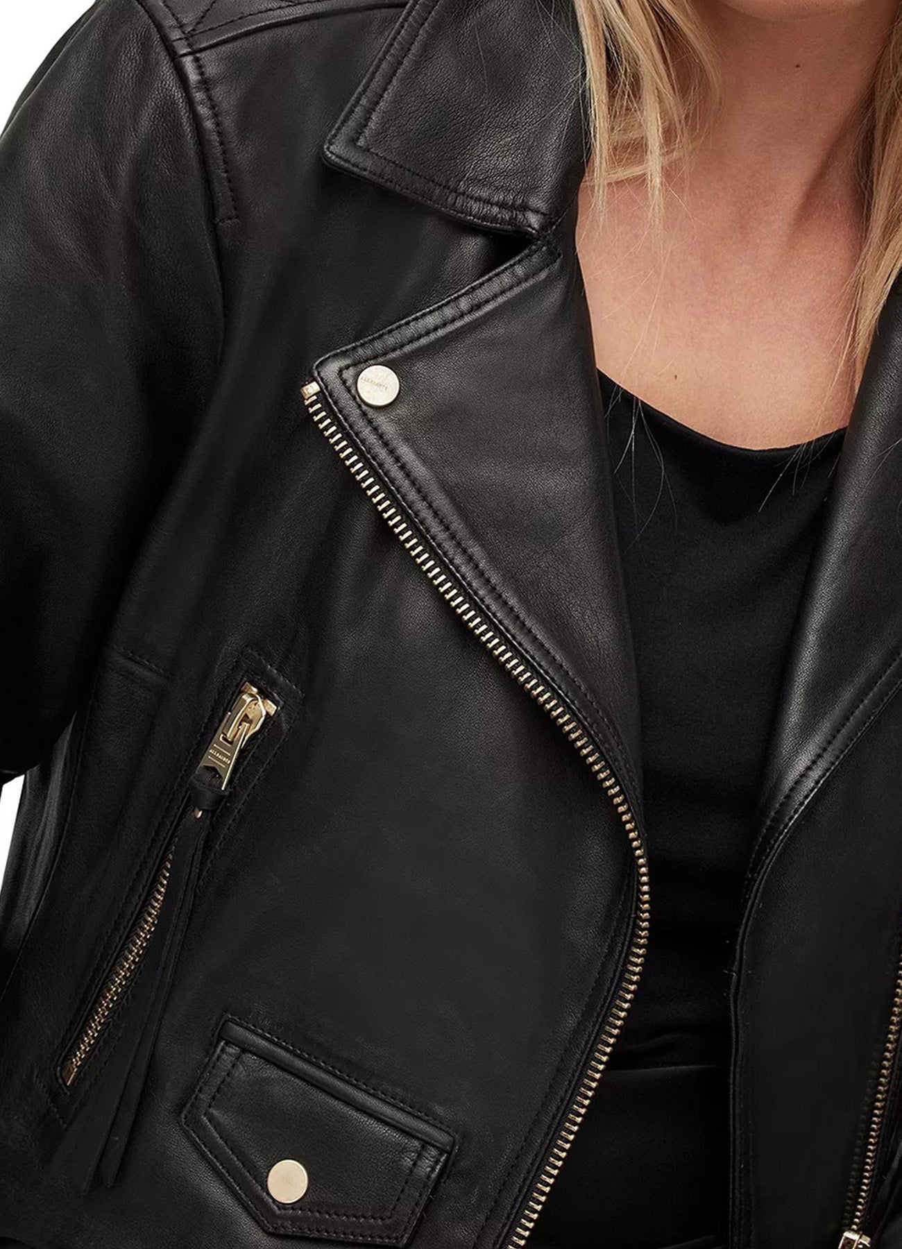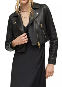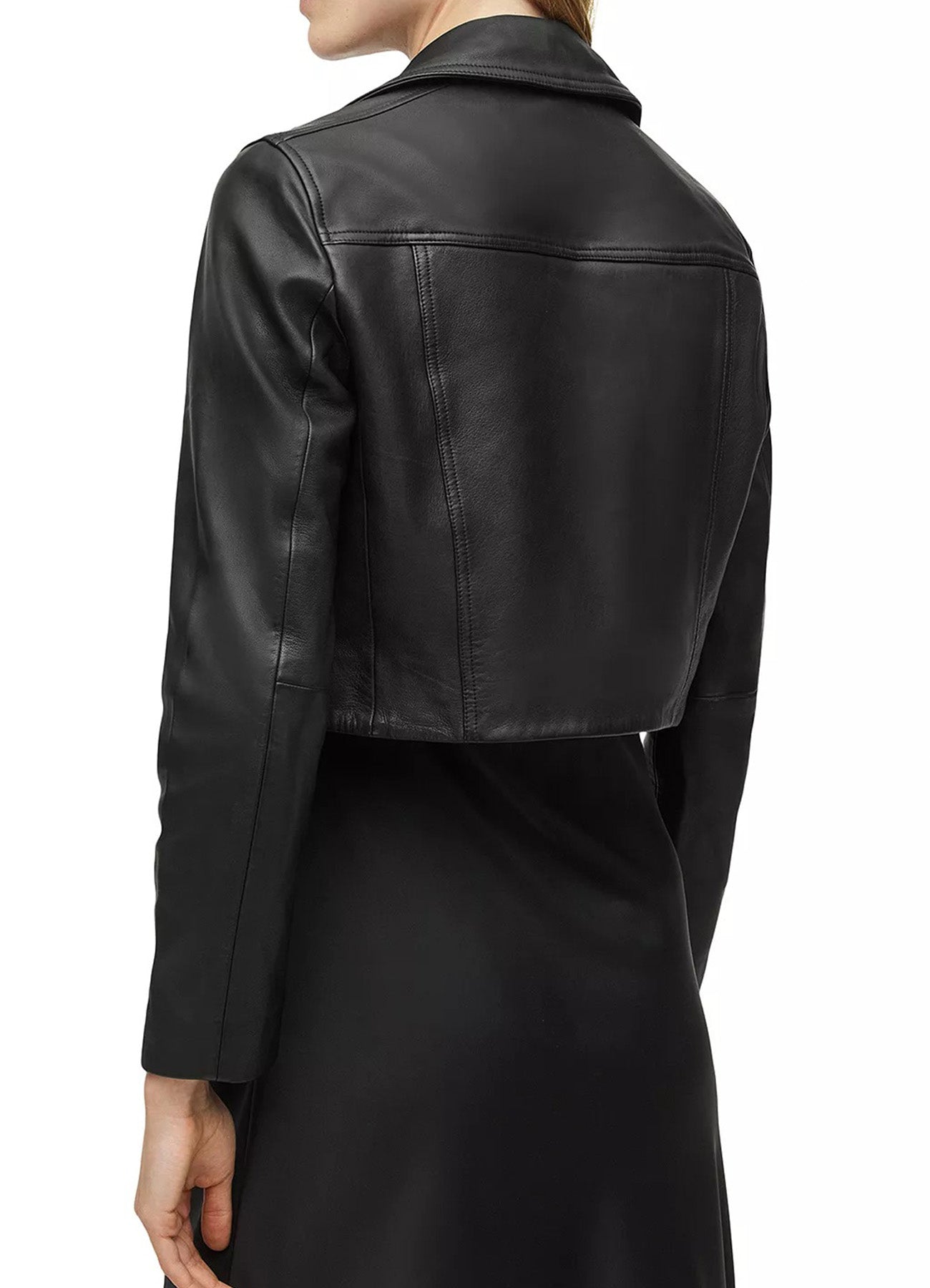 Womens Short Length Black Biker Leather Jacket - X-Small / Black